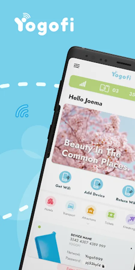 Yogofi is a free travel app that allows trip planners to book tickets for transport, attractions and tours via secure payment using credit cards. It also allows the subscription of pocket wifi for their travel.
