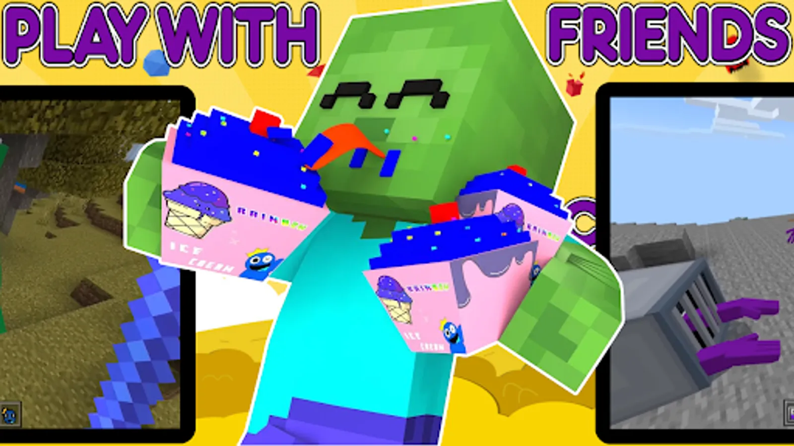 Start a unique gaming adventure in the pixel universe of Minecraft. Enjoy new cartoon characters Rainbow Friends in Minecraft PE.