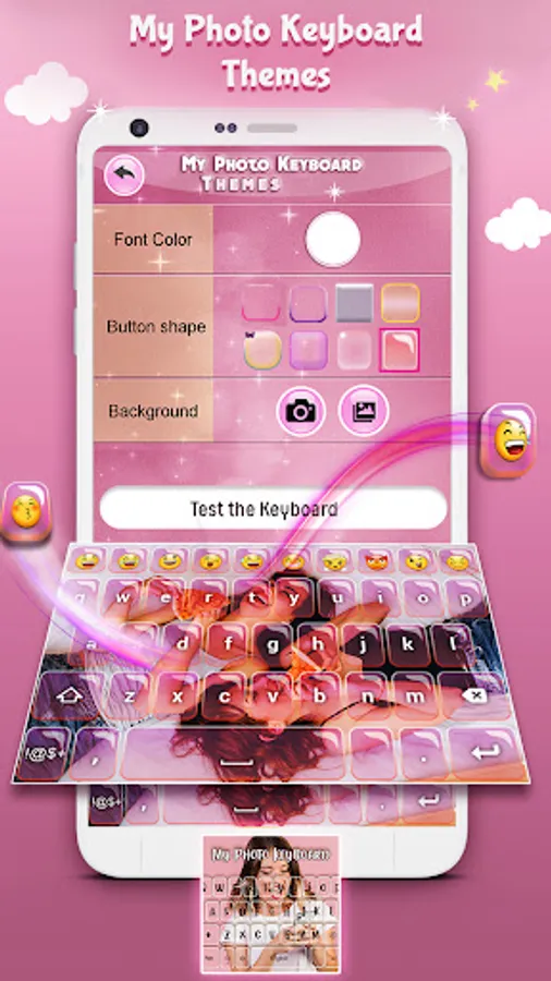 Customize your phone screen and your typing with beautiful themes of your own making. Start using cool symbols and funny emojis and enjoy chatting with friends, or sending love quotes to your darling! Get our fantastic photo keyboard changer today. Upgrade your smartphone screen with your favorite keypad pic app! When you can't find the right words to express yourself, use photo keypad theme to get inspired, and of course text emoticons and smiley symbols! You'll have nothing to lose if you set your love image or beauty selfie as your keyboard wallpaper photo because this cool customization app is completely free. If you don't like your keyboard pictures you can always choose another photograph as your theme! Now when you've found this app you can forget all about boring typing. This app will appeal to your style, that's for sure. Choose your keyboard wallpaper in order to apply a beautiful keypad photo change and have a better typing experience! We see that your own picture keyboards are being frequently searched, so we guess you will be more than happy with “My Photo Keyboard Themes” app with emojis!