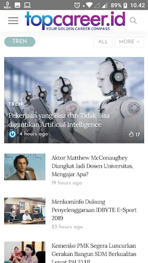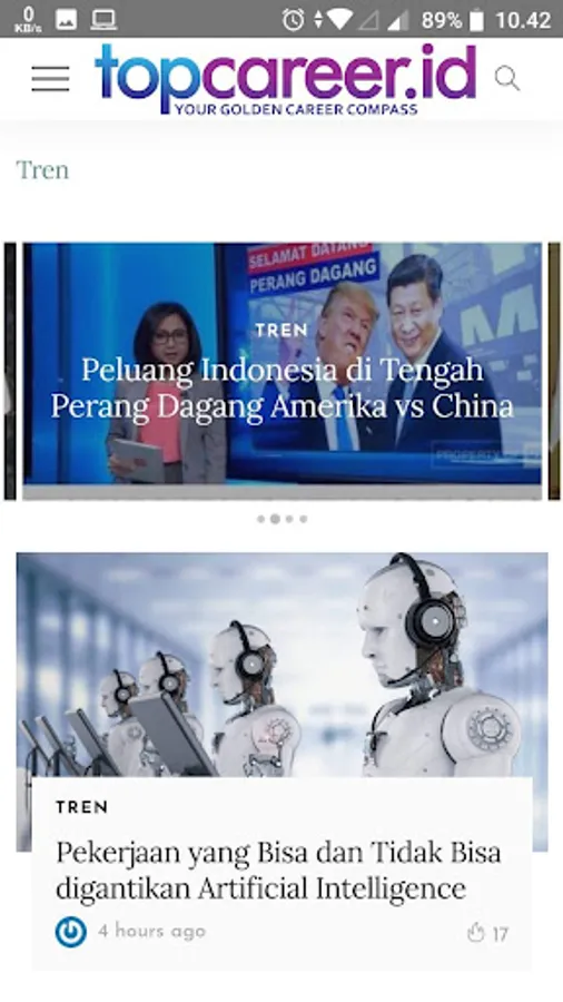 Info karier itu kan bukan cuma sebatas info lowongan atau gaji. Yang jauh lebih penting adalah info terkait peluang karier di satu perusahaan itu gimana. Bagaimana juga tren karier disatu profesi. Bagaimana ngembangin kompetensi biar karier kamu nanjak. Nah semua itu, TopCareer.id sajikan khusus buat kamu.