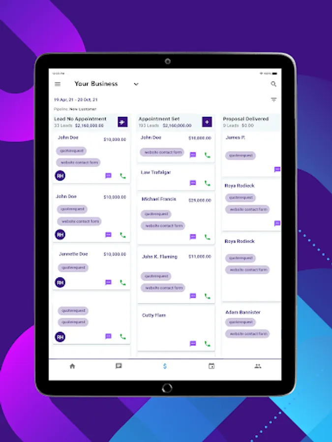 Track all incoming leads leaving "No Lead Left Behind"! View and customize sales pipelines, track all incoming opportunities, tag leads with potential revenue, fully customized Missed Call Automations, Voicemail Drops, Power Dialer.