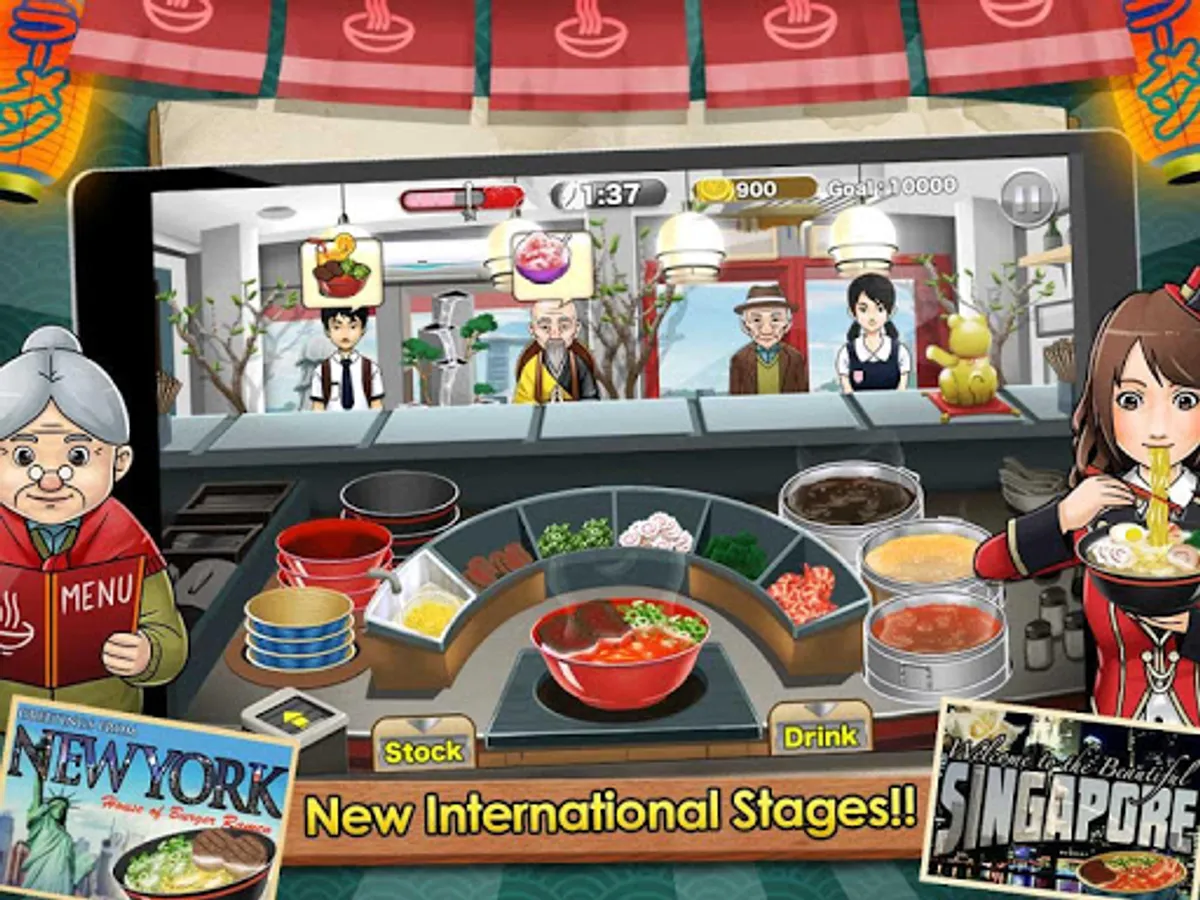 Your Ramen Chain got an Investment from someone!! Follow the story of our young ramen prodigy in search of becoming the world’s best Ramen chef, go International in the new update and take your ramen goodness to the World!!