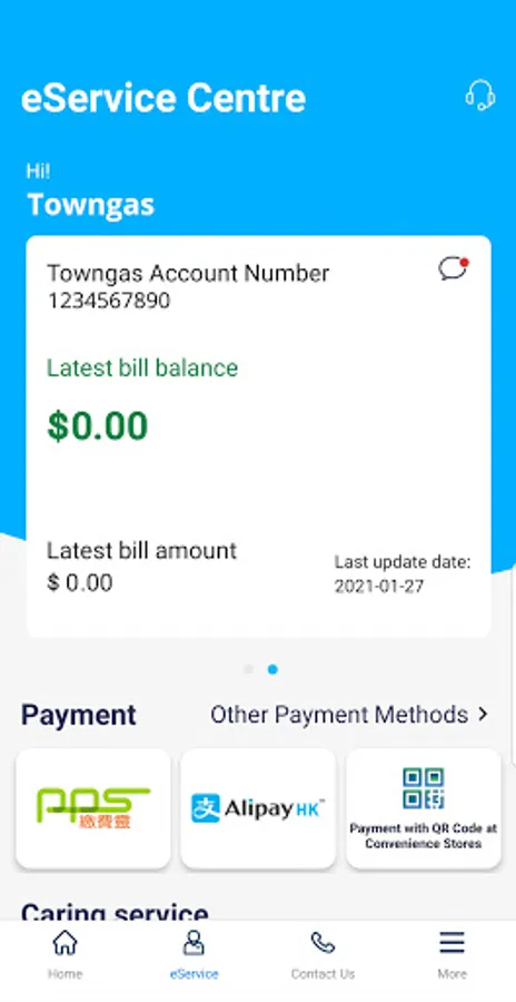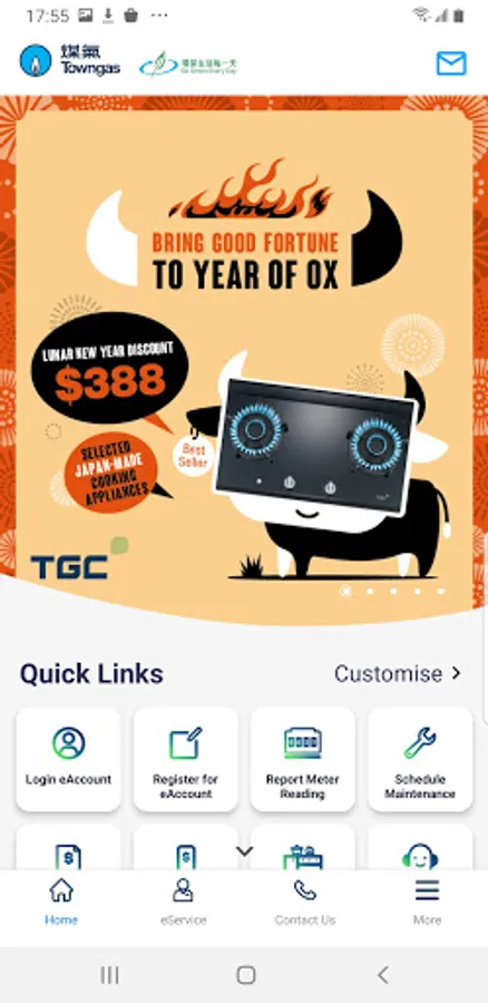 The enhanced eService Centre enables users to manage their Towngas account anytime, anywhere. In addition to opening a Towngas account and reporting their meter reading, users can make maintenance appointments as well as check their gas usage and payment record from their mobile device. The system automatically displays the latest bill balance. Users can also opt for meter reading and eBilling reminders to make gas account management a breeze.