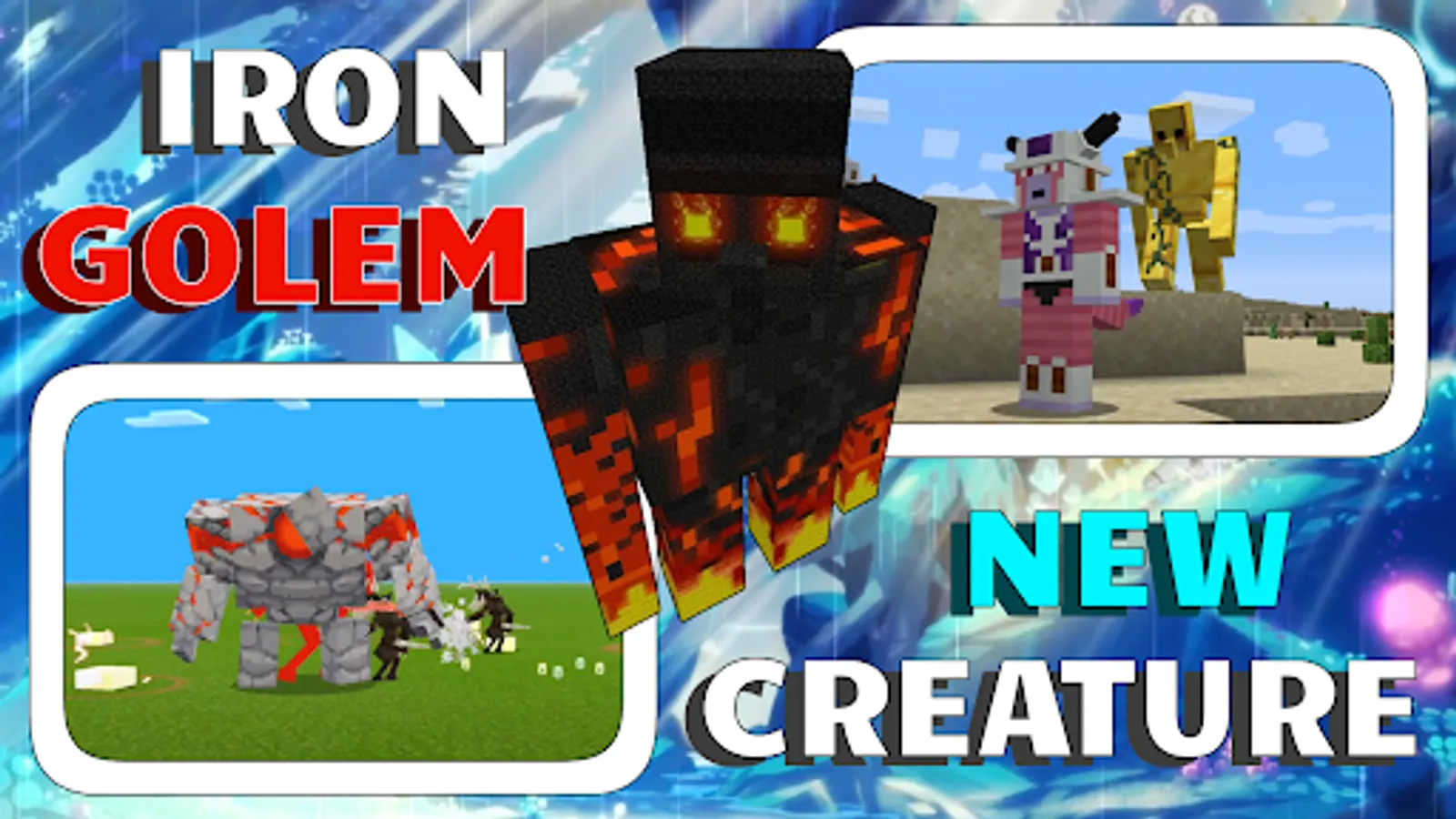 If you are a lover of adventure and battles, then it's time to diversify your map with new creatures - titans. New monsters will appear on your biomes: snow, magmatic, ice, earth and other golems. The spawn location of each parasite is unique: some in all biomes, others only in certain ones. The main attack is throwing boulders of cubic blocks. The textures of the monsters are made in 3D and are very realistic, the world of virtual reality has not yet been so frighteningly beautiful. The game will be transformed and the battles will be more difficult and thus more interesting. Almost every material can be transformed into a golem. The call can be carried out in creative mode from a specific egg, and in survival mode you will have to do a little bit of craft to get the long-awaited bodyguard. The rarest creatures can be crafted from redstone and nether stars. You can have an unforgettable bedfight between different creatures and youtubers. The structure looks like a normal ritual: four blocks of a cube ingredient and a pumpkin in the center. The add-on is compatible with other shaders, textures, maps and skins, it is perfect for both adults and children. If you did not succeed in the challenge of the stone guard, do not worry, we have added golem skins that will suit both boys and girls. Never before have you seen such a mutant, pixel mobs are much more terrible than wither skeletons and tornadoes. If you tame the golem, it will be your pet, as well as a strong defender mob. You will become the most popular on the server and scare your friends by dressing up a mutant skin. You can make your game a horror by summoning a powerful boss, or vice versa, make it easier by making friends with a giant. You will get a new adventure experience. If you decide to build houses to hide under the bed, this is not the best idea, because with one blow the monster will destroy your buildings like a TNT explosion. The Iron Golem has increased health and armor. Some stones have unique behavior patterns and resources, some creatures have magical powers that pulsate inside their chest like an iron man. You can strengthen a new mob with a potion and its transformation will take no more than ten seconds. If you can still win, then you will receive an unprecedented reward from the chest. Another unusual attack effect is tossing blocks and hitting the ground creating an earthquake causing massive damage to zombies, skeletons and ender dragons. New items (Impact Orb, Iron Spike Shards and some plants) will undoubtedly diversify your game.