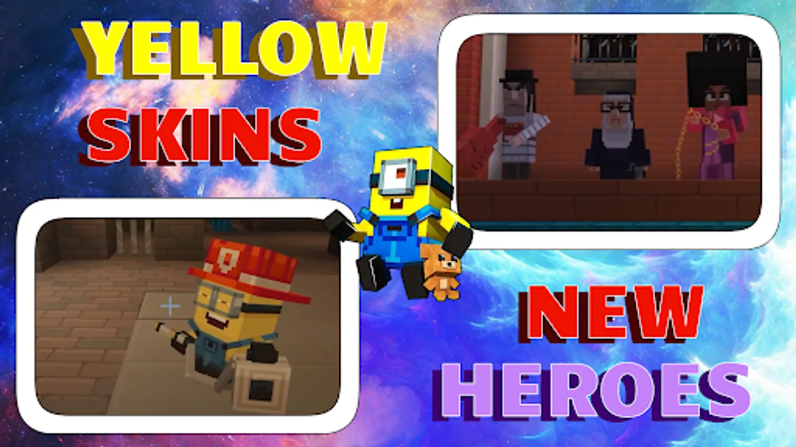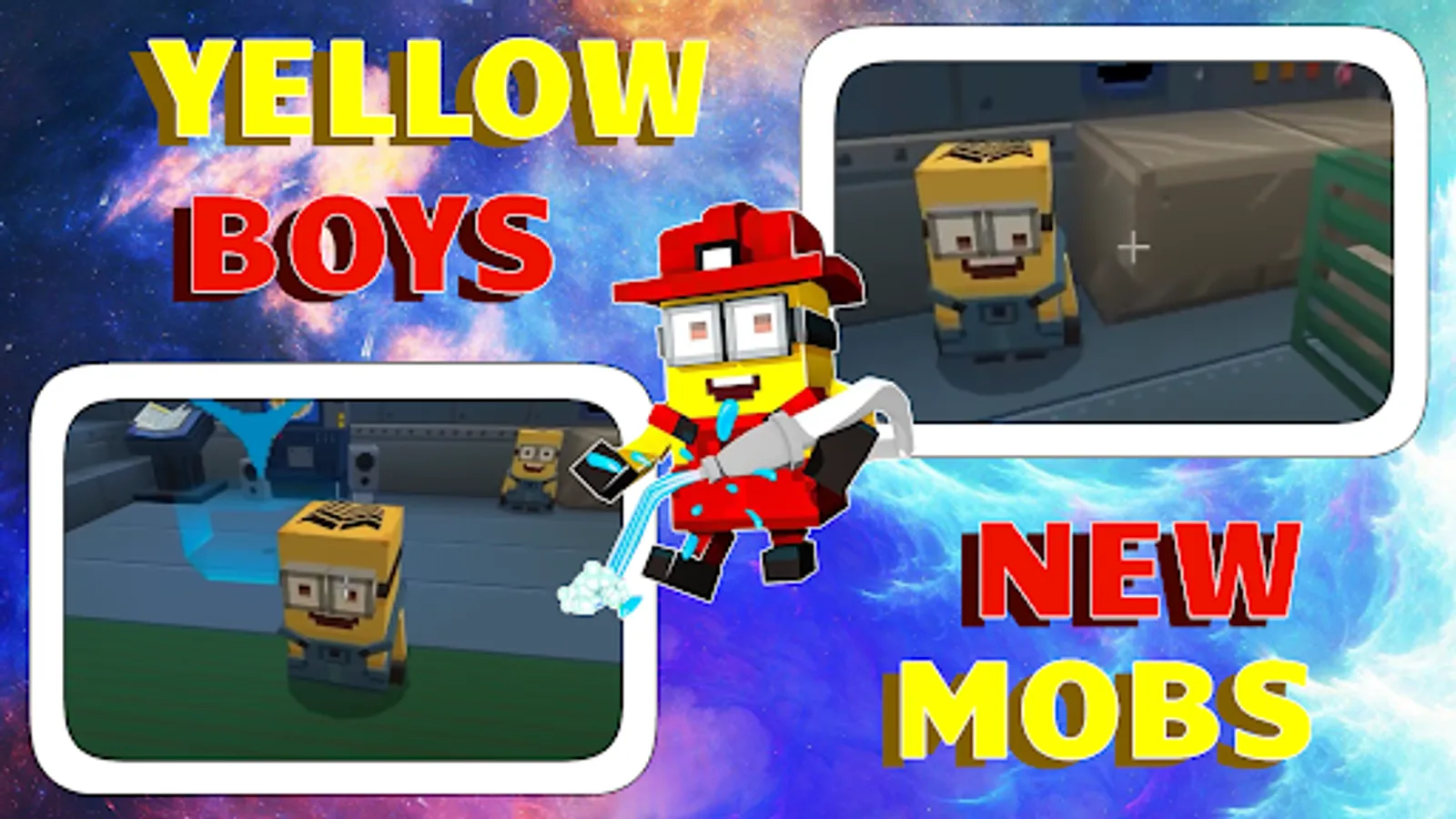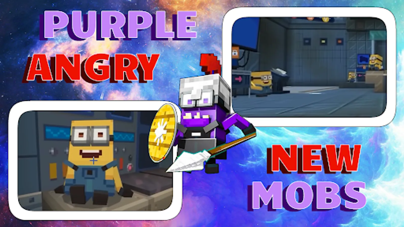 New yellow friendly cube mobs. These creatures are very friendly, but if you attack one of them, a crowd of purple evil minions will fall on you, which turned with the help of a potion and will eat everything that gets in the way, a block or even a resident. Explore the map and you can find these monsters walking in different biomes. If you gain the minion's trust, he will become the most loyal companion. These cylindrical creatures will become very popular on your server. For the first time they could be seen in the film, and only now they can be played with them. Traveling with them will be interesting for both girls and boys of all ages. Minion minions can be found in the void. In addition to yellow humanoids, you can meet Gru, Steward, Scarlet Overkill, Kevin, Bob and other NPCs who will walk around like roaming merchants. If you have tamed one of them, you can command them, send them on various tasks - fish, go hunting, rob monsters and fight for you with golems and ender dragons. The game will become more entertaining because the new creatures look very funny and it is doubly interesting to explore such a world. Sonic dash and homing attacks - these attacks will be mastered by villains. Robotnik and other supervillains will have different attack animations. Your inventory will also be replenished with new weapons and armor and everything to defeat the creatures from pokecraft. You can change your skin and join a gang of evil minions and despicable me - gru. Despicable me games free mod is a very interesting universe in which everyone will find their own story and choose their side of the good guys. This game will make you run without looking back like a minion rush, constantly mining new pixel blocks and improving your bunker laboratory. Immerse yourself in a special cartoon universe of the game world minion rush game for free. Delightful 3D textures of characters and a pleasant anime appearance will allow you to get enough of the virtual universe and conquer your neighbors and their treasures. You will move to a world where toys come to life and you can start a dialogue with them. Develop your creativity, let your imagination run wild and create a building - a base for yellow friends. But do not forget to craft weapons so as not to fall into the clutches of the merciless 6. In creative mode, you can fill your map with any creatures from the call eggs, but in survival mode you will have unforgettable emotions.