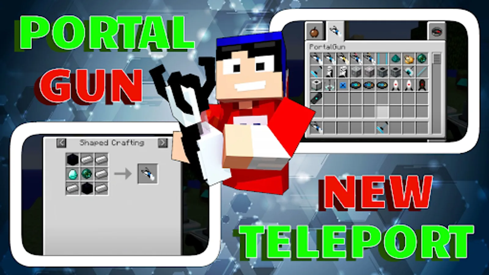 A great way to prank your friends, have fun, create a building and fill it with furniture and doors, go outside the door, enter the portal, go outside. Everyone will be dumbfounded by your new abilities. The game is based on the popular game of the same name with the same name as the mod. To create a portal cannon, you need to go on an adventure and find more than one block, including a lucky block and a red stone. The gan portal itself is a cool weapon from the future, because with it you can open interdimensional tunnels. The research will become much easier because in one click you can get to any point in one step. Enter the red portal and exit the blue one. You will get a new experience from the game playing both in the company and alone. You can also craft portal weapons 2, this is an even more modern cannon that will give a few more chips and has improved animation, but crafting in survival mode will require a lot of strength and skill, so try new creative abilities. Teleport around the world, parkour maps will become too simple, and running from pokemon and other evil monsters will become an easy task not only for youtubers, but also for beginners. Another addition will be the turret, you can open the settings and make it aggressive. Another item in your inventory will be a jumper - this is a tool that will allow you to bounce on a trampoline. Radio is a convenient way to listen to music and have fun. Creatures like robots with laser eyes will spawn at random on the map. A new pleasant texture of the portal, you can put the rings themselves on the ceiling and on the wall, even on plants and on houses. The game will suit both boys and girls and will allow you to create puzzle cards and secret passages. Night monsters (wither skeletons, zombies and other monsters) will not scare you now and you will not experience horror, you will have the best way to play hide and seek simply to escape the pursuit and remain unnoticed. Leveling up and obtaining rare items like the star of the void will become much easier.