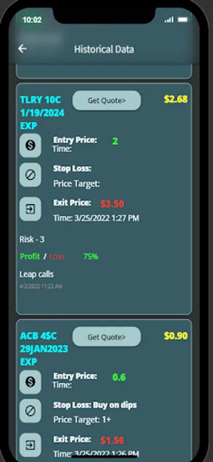 Every Alert with P/L will be archived to the Historical section of the App. Review the same to see our massive gains provided to members.
