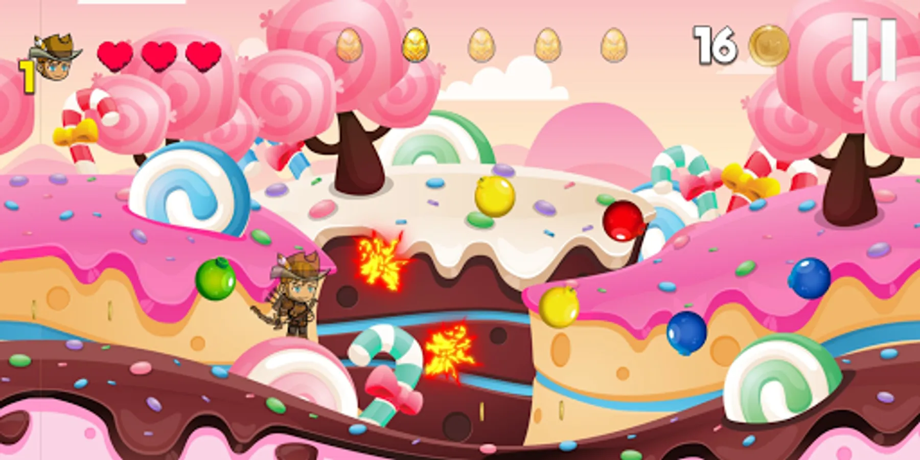 Journey through forests, volcanos, beaches and even a world of candy, whilst battling a host of strange characters.