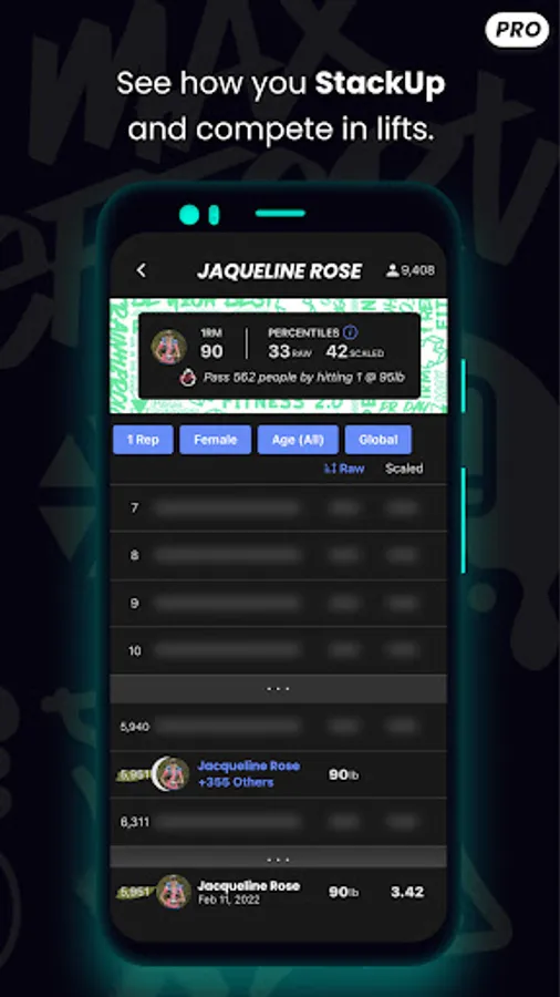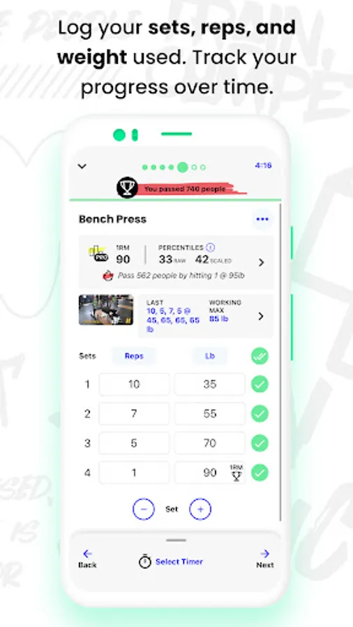 Visualize your progress with built in analytics. Measure everything, from progress over time to increases in your 1 rep max