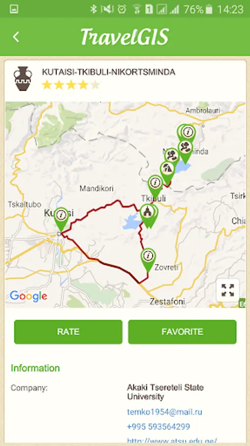 Travel GIS will help you easily select attractive and interesting tours all around the world. You will be able to travel virtually, follow virtual route and get detailed information about touristic objects. During the trip you will be able to localize yourself on the map, follow the route and avoid losing it by using the app. App is presented in three Georgian, English and Russian languages. Discover the world with Travel GIS.