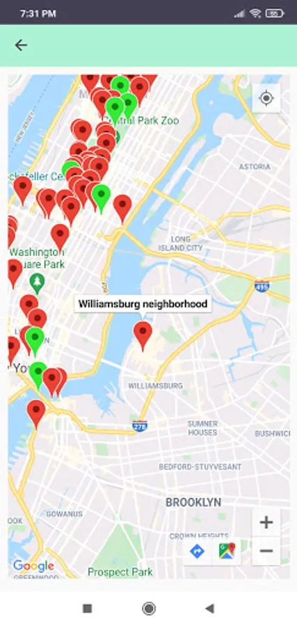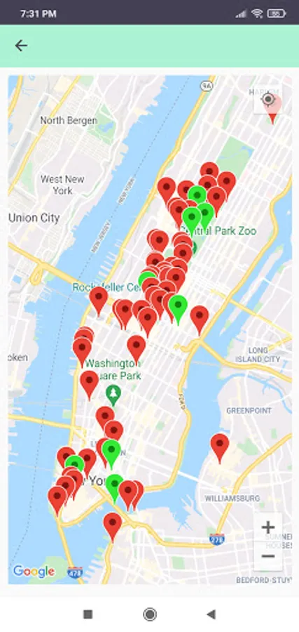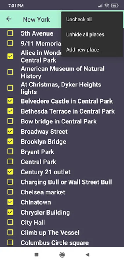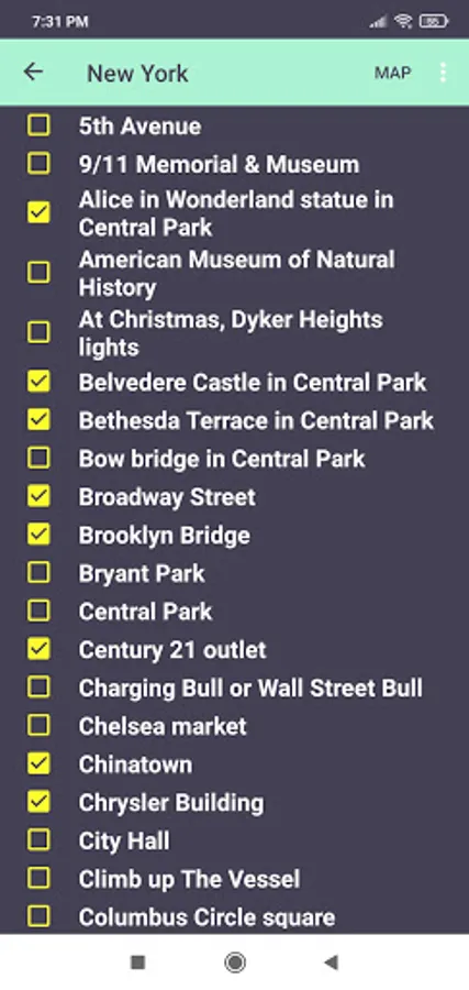 You have an alphabetical list of places or the map version in which the points to visit are in red.