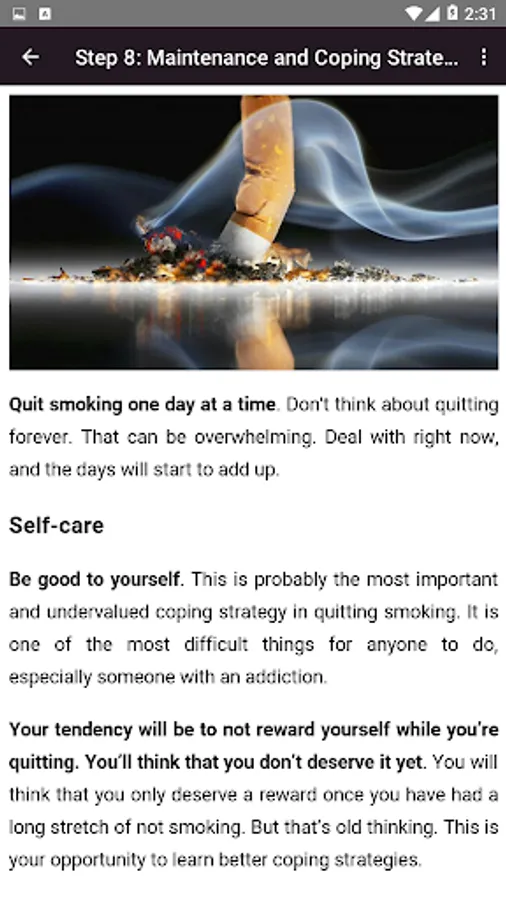 • Avoid negative emotions and thoughts about how difficult it is to quit smoking. Do not always remind yourself that you will quit smoking throughout your life, but treat each day separately.