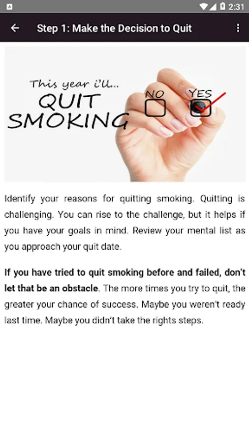 Be realistic in your expectations about quitting smoking. It's not easy but it's not impossible. Millions of people quit smoking every year. Smoking may be common, but it can be broken, it may be addictive, but it can be cured.