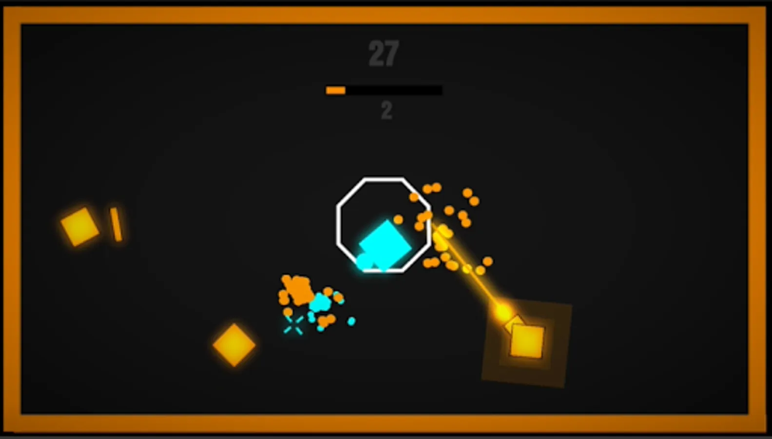 You Start in the middle of an octagon that you need to defend from the three enemy types that are going to attack it throughout the game loop. the three enemy types split up into vireos category's so stay focused on whats happening this hyper casual game really needs your fully awareness... at the beginning you get three lives every time a enemy hits the Hexazone (Octagon) you loose one life, and logical if you have lost all three lifes you are Game Over...