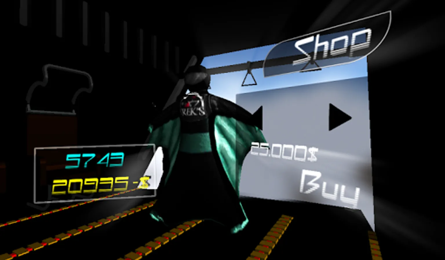 control the player with the accelerometer and won money to buy things in the store.