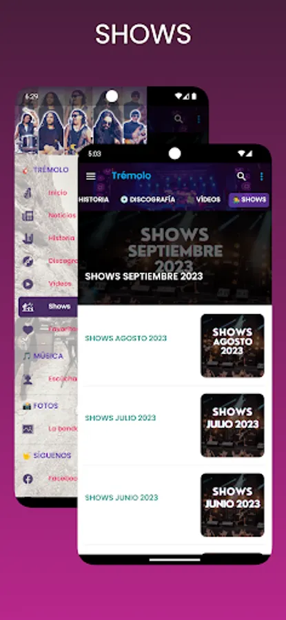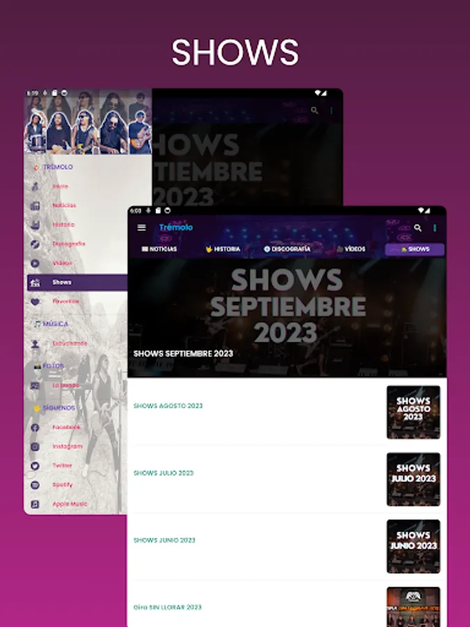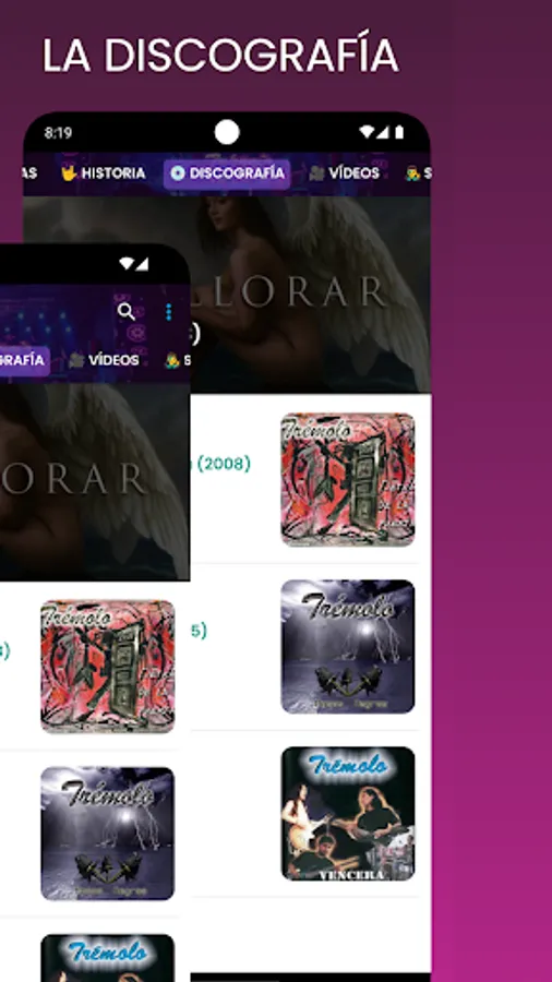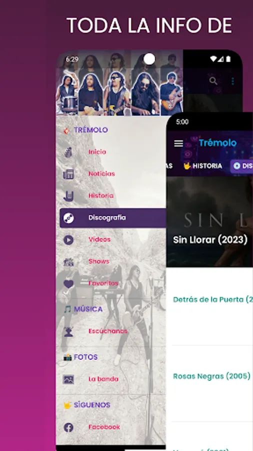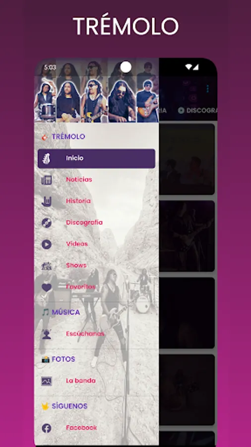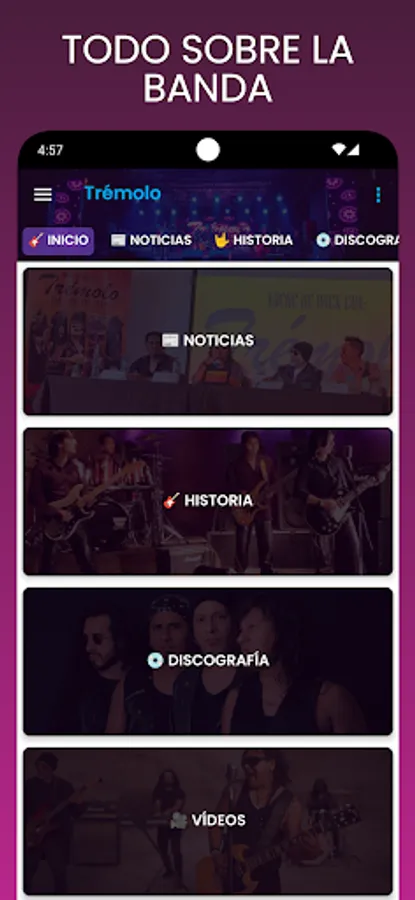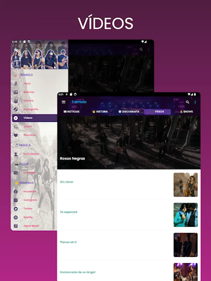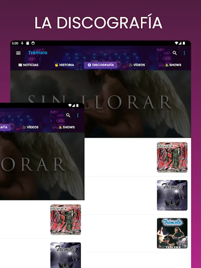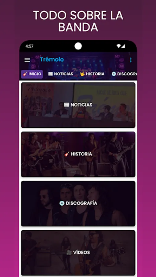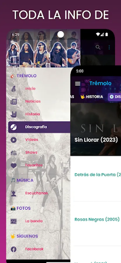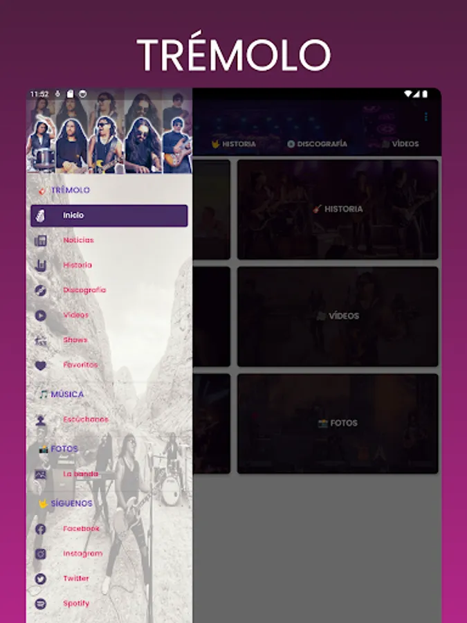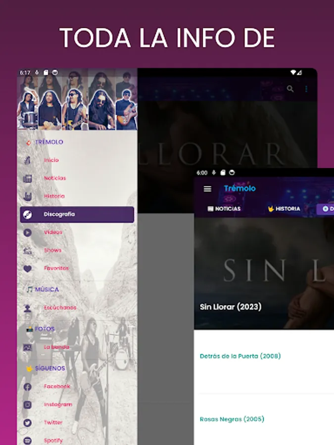 This is the unofficial application of the band TRÉMOLO, in an attempt to share the band's information about news, history, videos and albums, so far they have released: Vencerá, Rosas Negras, Detrás de la puerta and Sin Llorar, With some interesting data, there is also a news section where you can keep up to date with what is happening with the band Trémolo, you can listen to caletas audios, unofficial music from the band Trémolo, and all the information about and where you can listen to their discography complete, and everything that is coming with TRÉMOLO the Peruvian band from Tacna - Peru.