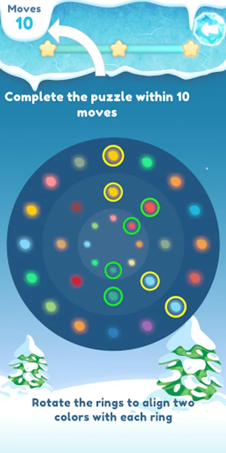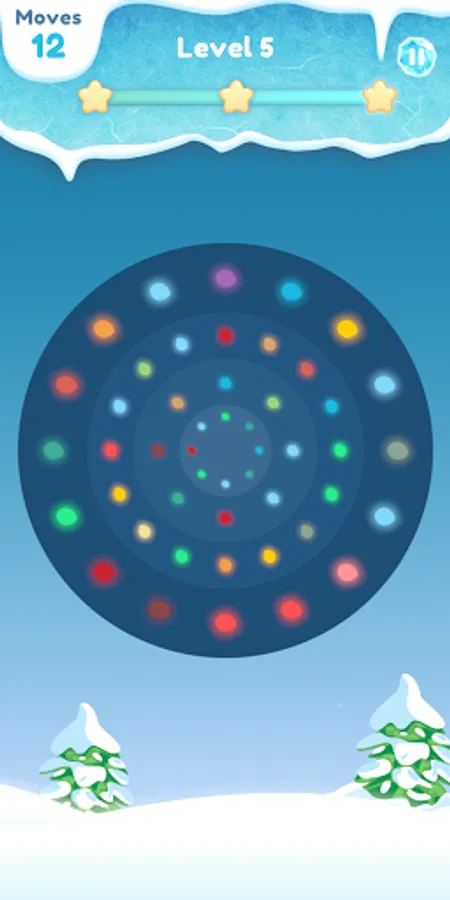 Put on your christmas sweater and solve these frosty ring puzzles. Focus and concentrate to solve the different ring gem puzzles. To win a frosty level you will have to turn the different rings to align and connect two gems of the same color. Complete the frosty puzzles within the goal moves or you will have to restart all over again.