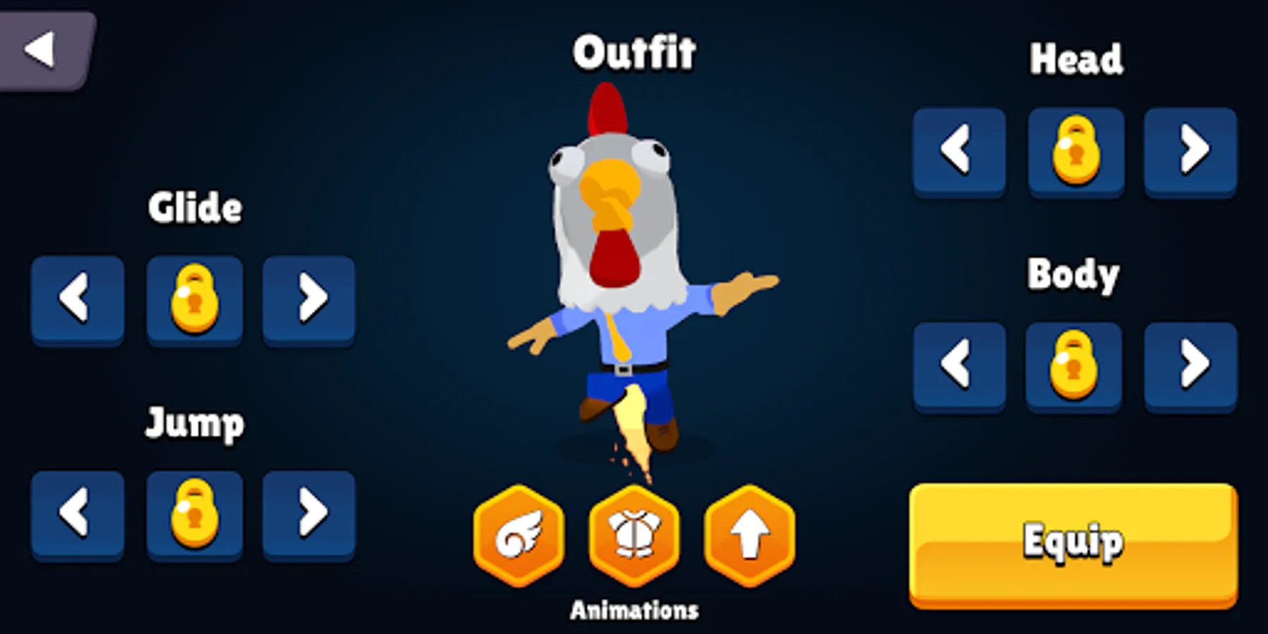 Collect coins throughout each level, coins can be used in the shop to buy new outfits for your character. In the outfit tab you can select which outfit you want to wear on your adventures.