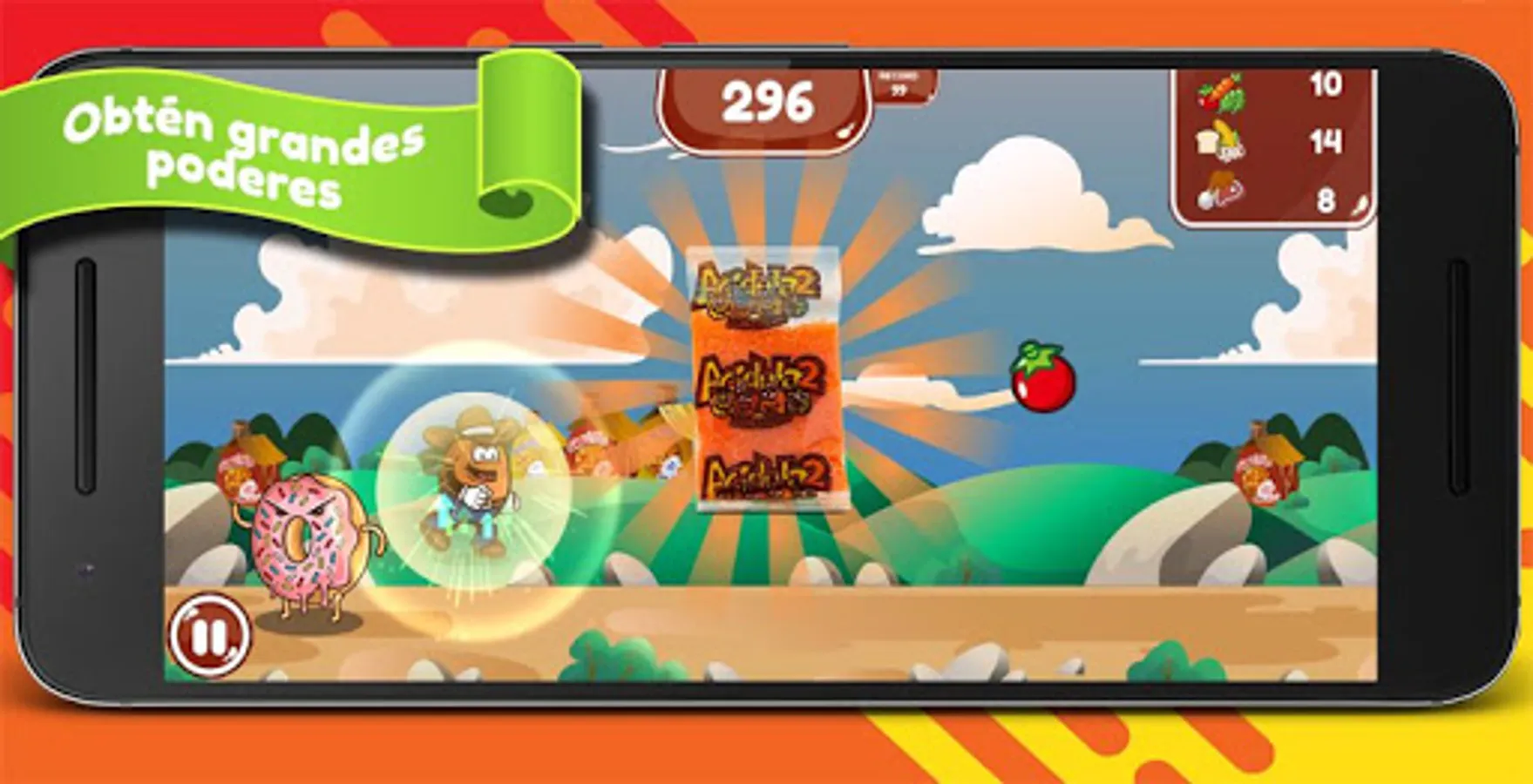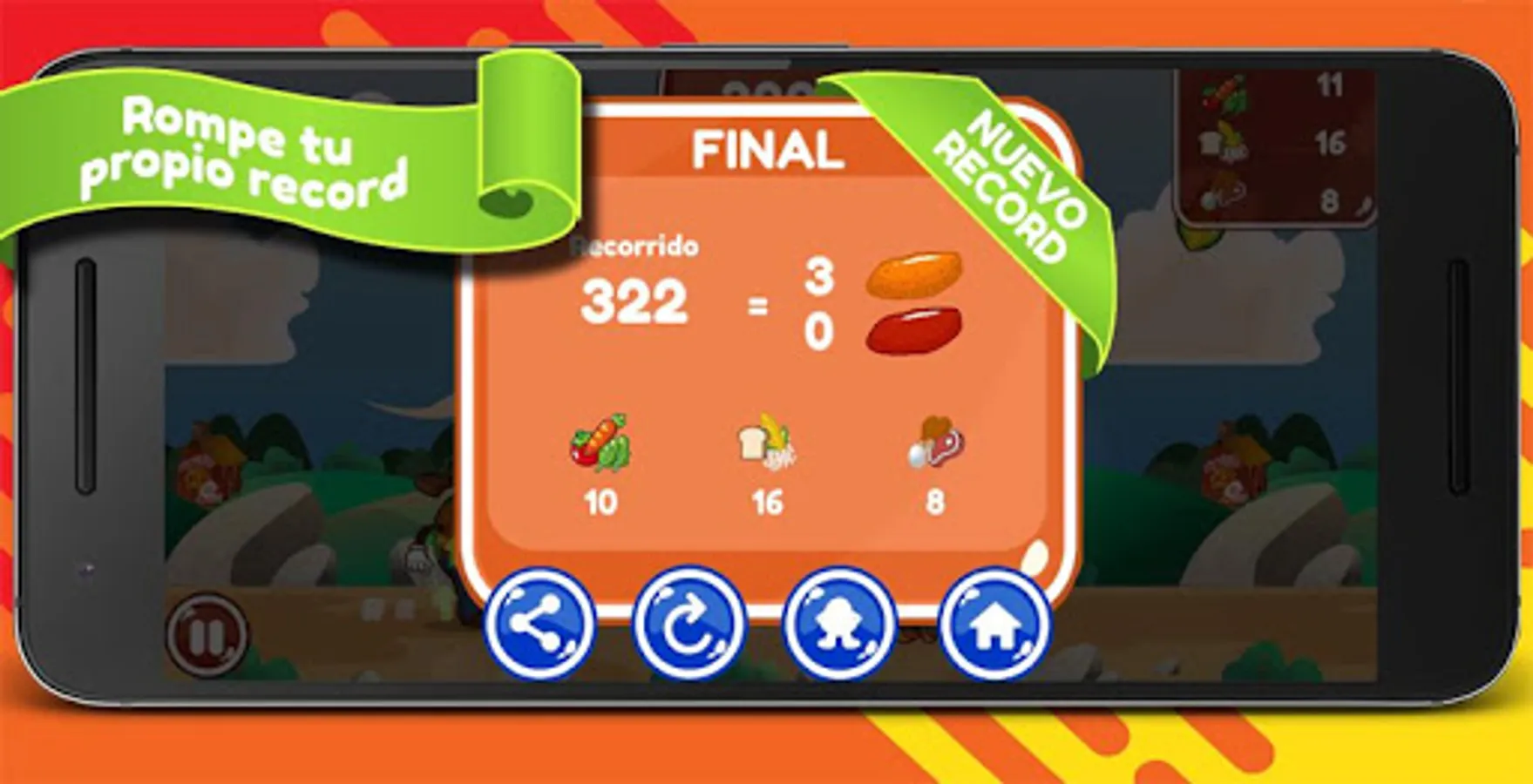 Runner game, in which you have to dodge junk food and get healthy food, in order to fight the invasion of unhealthy food.