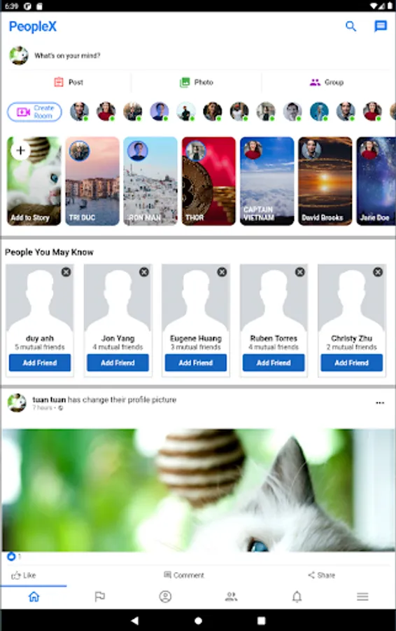PeopleX aims to connect people with mutual interests, hobbies, routines and help people learn new things, spread the reading culture to people of all ages. PeopleX keeps you updated with the latest news, technology, helps you connect with your friends, share your hobbies, interests and knowledge to people in the social network. PeopleX also helps people approach knowledge of different fields in groups where people share their knowledge and learn from others anywhere, anytime.