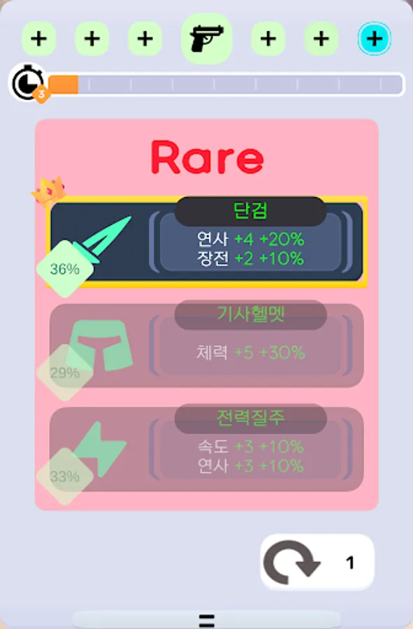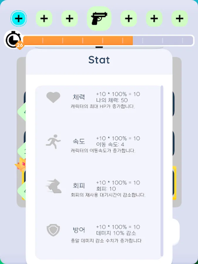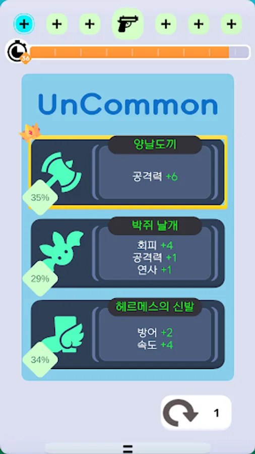 You can create various combinations by continuously selecting 'synergy' that strengthens the character's stats or grants special abilities for each round.