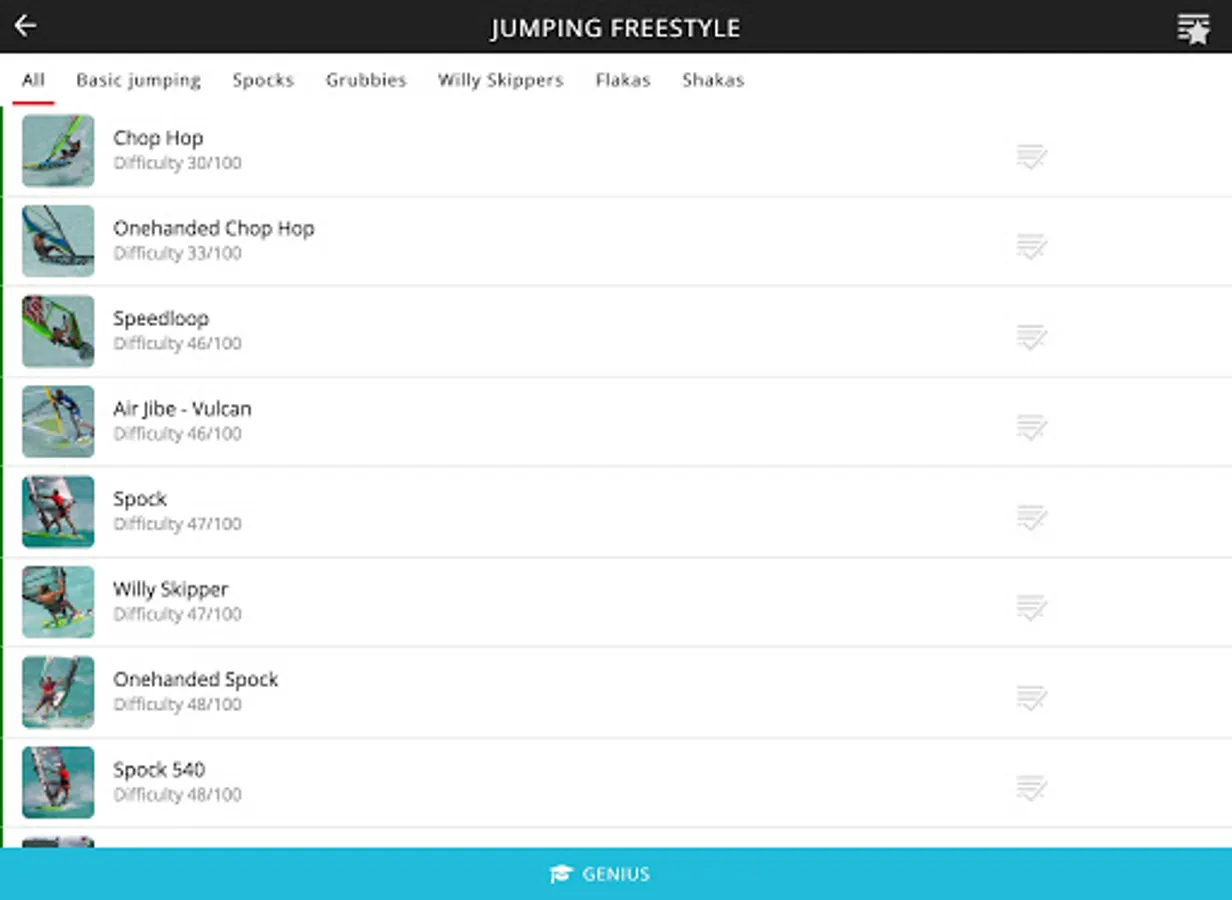 Accessible through mobile and web (www.trickgenius.com) is the latest high tech windsurf coaching platform presented by Tricktionary.