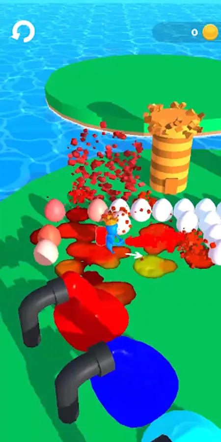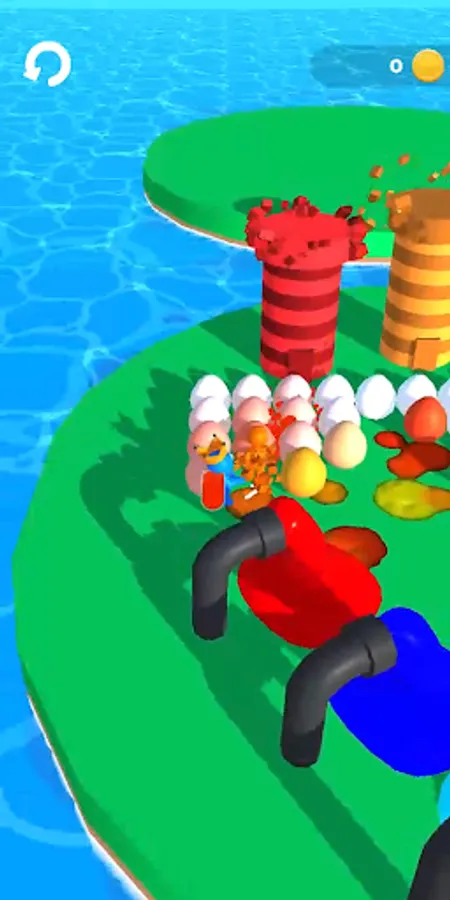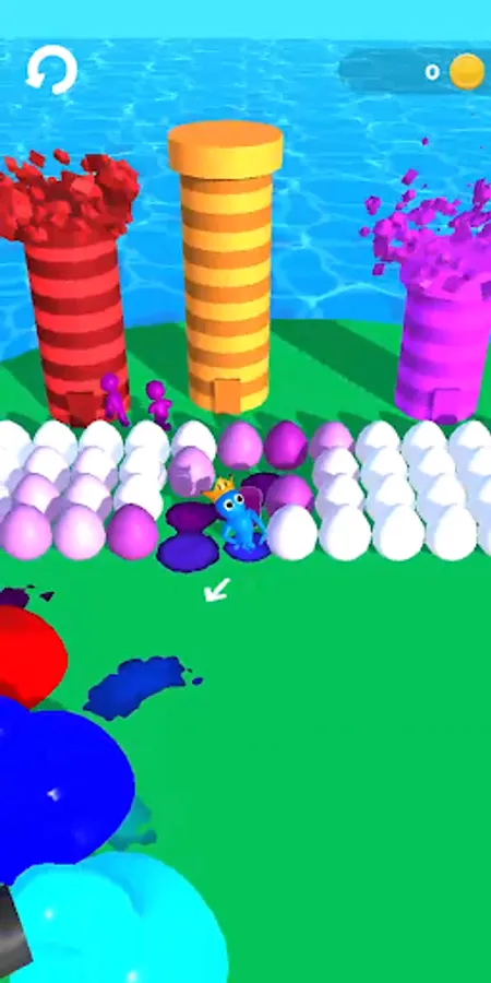 In order for the eggs to produce troops, the player must color the eggs with various paint colors.