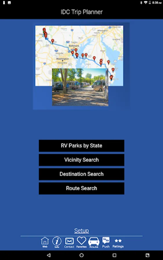 The IDC Trip Planner has also added a number of valuable, mobile-driving features that will help you find participating RV Parks while traveling in your vehicle. These features include: