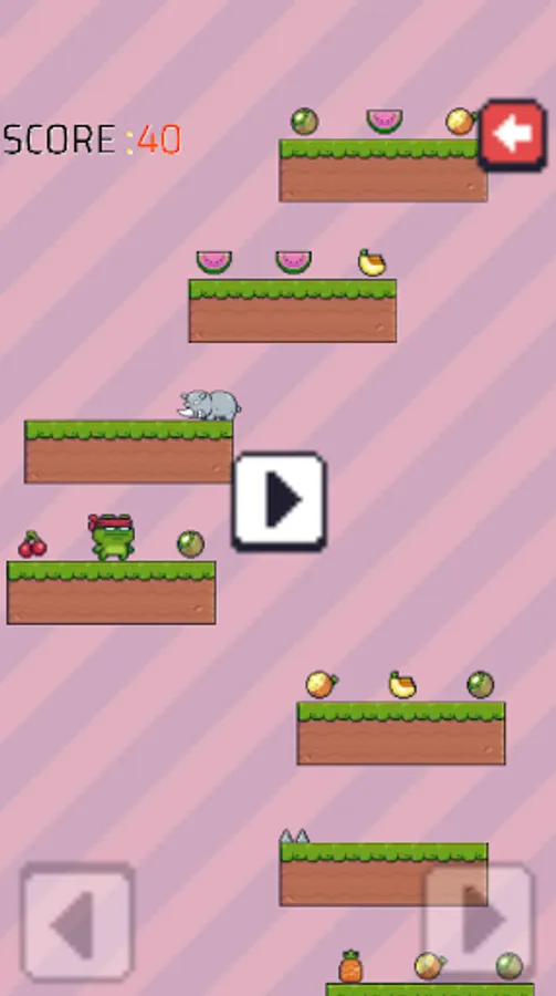 1. Press the Left, Right and Jump button to make Fruit Ninja Frog, the incredible jumping Frog, jump & run do wall sliding in the Fruit Adventure World