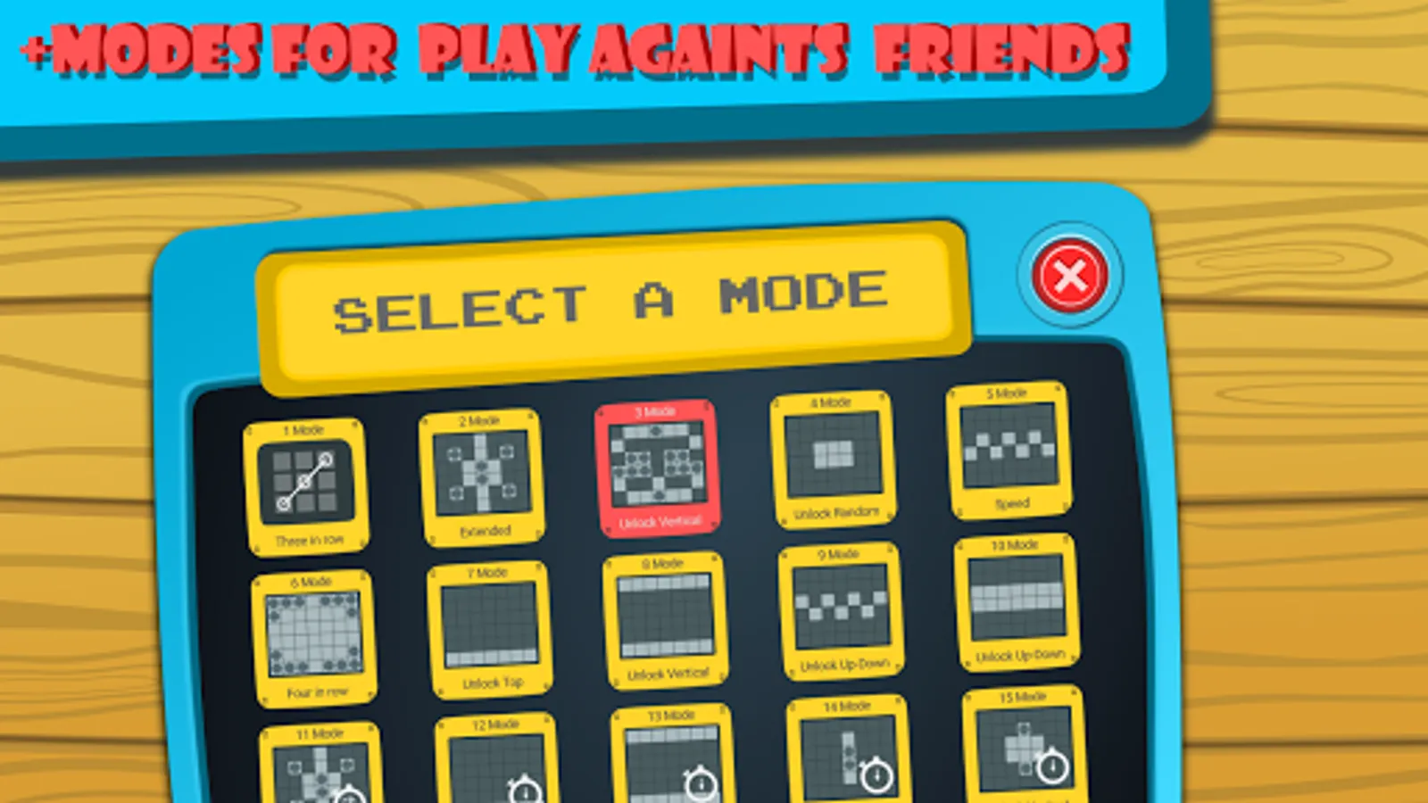 ✓ Play tic tac toe against a friend, in this mode you can select one of +15 board modes.