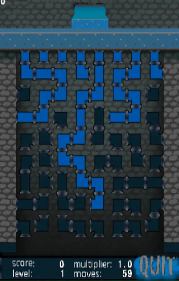 Pizzle is a puzzle game. The goal is to drain the water by tapping and connecting the pipes so the water can flow from the top to the bottom.