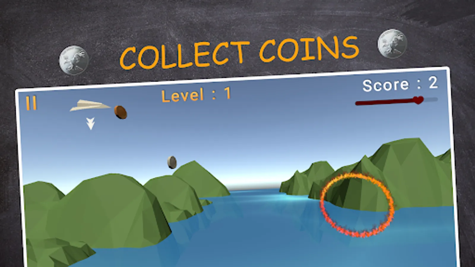 Paperplane has to go through Ring of Fire. But if it touches the Ring of Fire, It will turn into ashes. Paperplane also has to maintain some height, So that it does not dissolve in water. Can you help it to go through every Ring Of Fire?