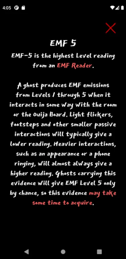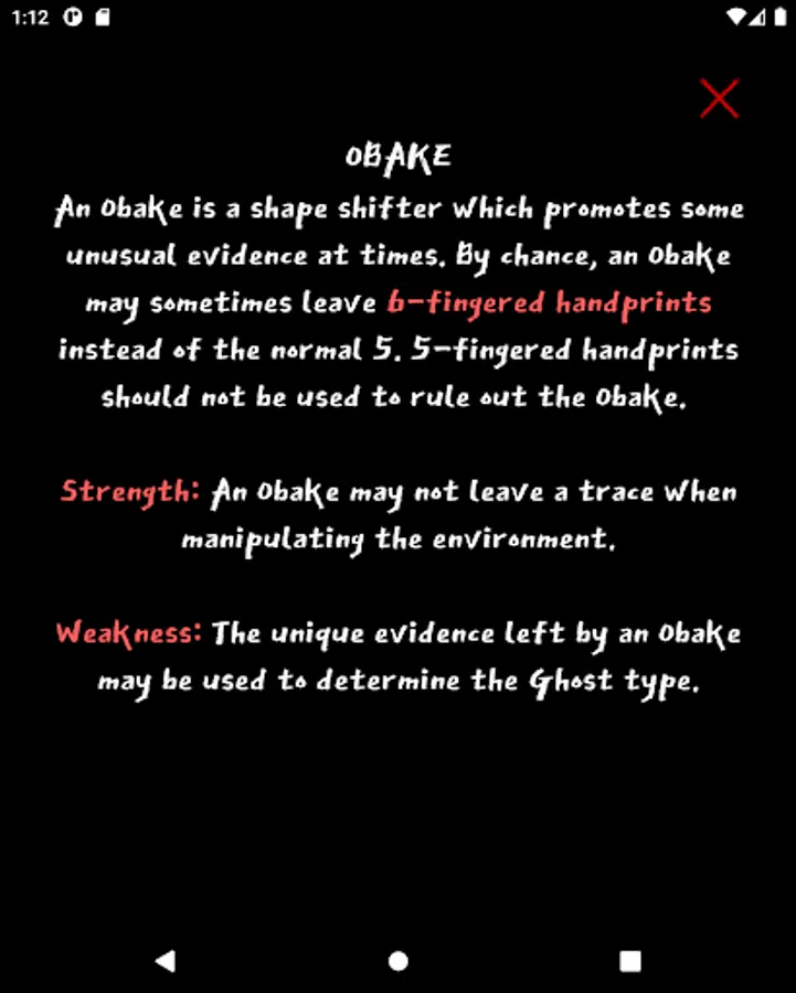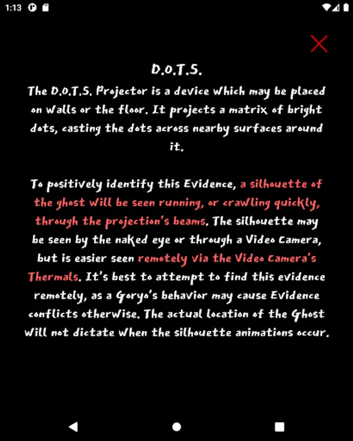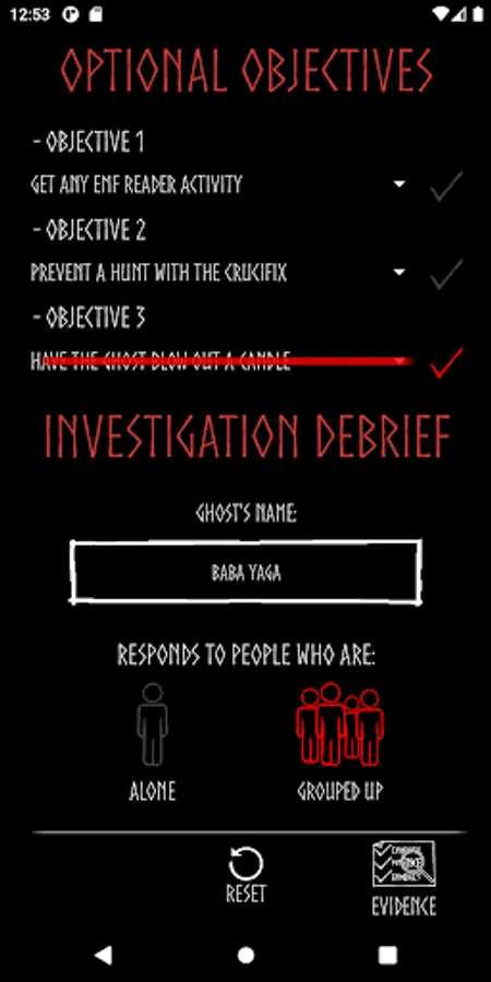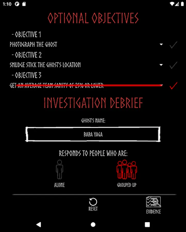 Detailed information on Ghosts and Evidence is accessible by tapping their names!