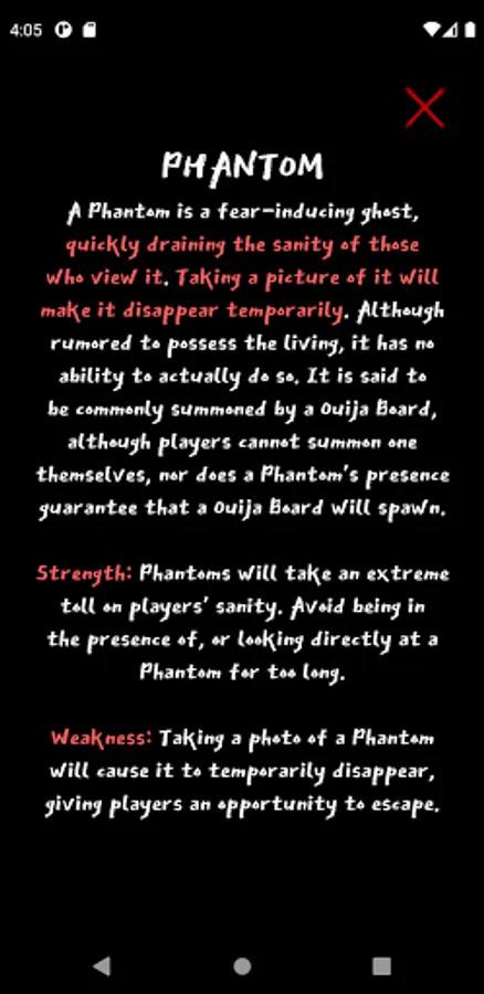 App content and information will always correlate with the most current official Phasmophobia updates.