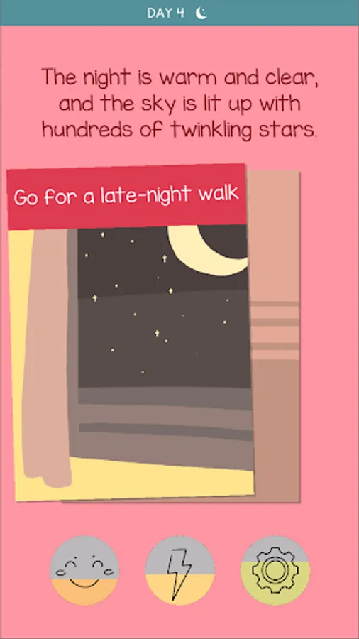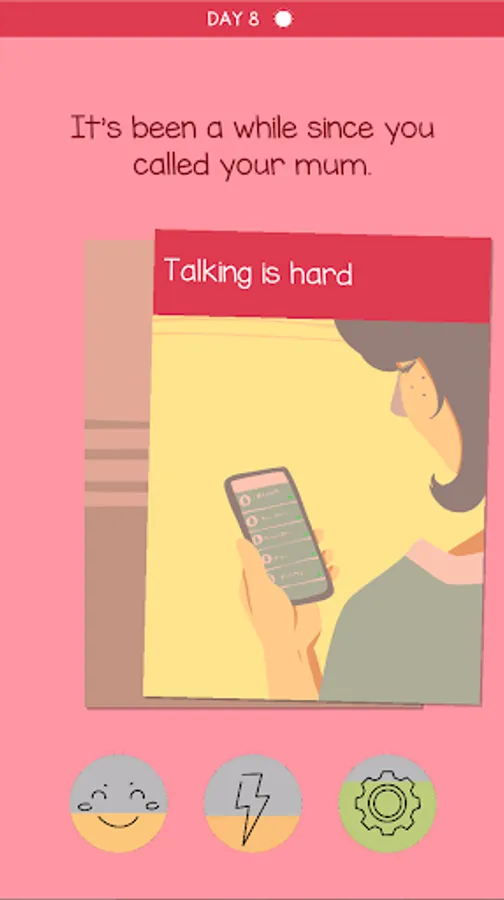 Homebound is a Reigns-style narrative game about making choices and managing your mental well-being while in lockdown. The choices you make will craft your story, while affecting your happiness, energy and productivity levels. Can you keep all three from hitting zero?