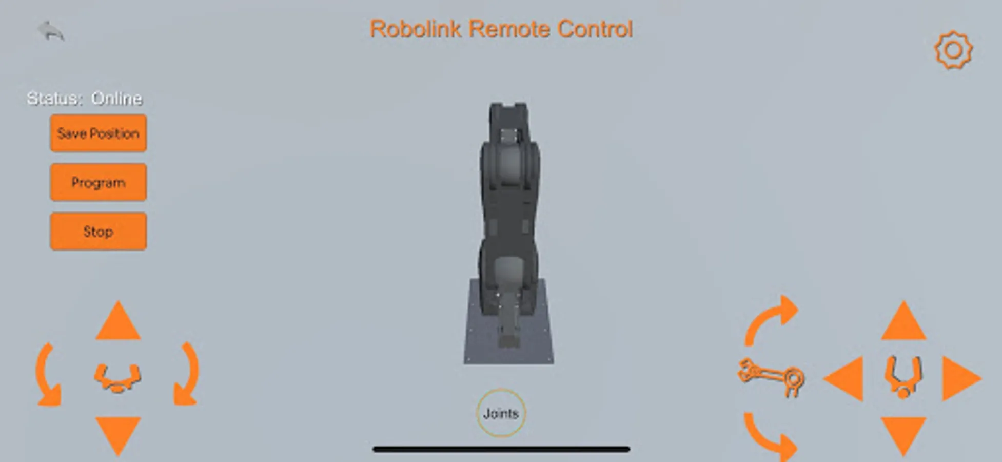 After you have connected your robot with the app via wifi you’re able to control it in the simulator. There you have the possibility to operate the robot either by its TCP or by its base as zero point. You’re also able to control the single joints as well as the gripper itself. In the settings you can adapt the speed from 0 up to 300 mm/s depending on your individual needs.