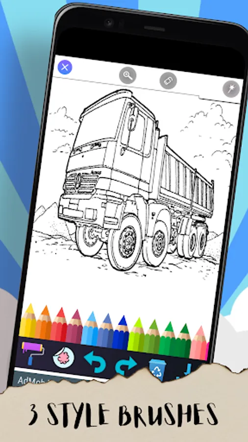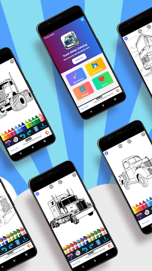 in this application you can color various types of trucks; Concrete transport truck (cement mixer), heavy duty trucks, Mobile crane, Dump truck, Garbage truck, Log carrier, Refrigerator truck and many more. this truck heavy duty coloring book game you will find various types of truck that are very cool.