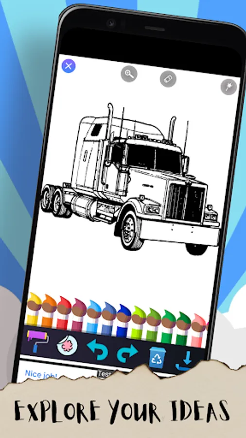 This Truck Glitter Coloring Pages is specially designed for adults because the lines in the very detailed pictures also have small squares and also glitter brush make an amazing features. This Truck Glitter Coloring Pages comes with clean images and a very friendly interface so it's great for everyone to play.