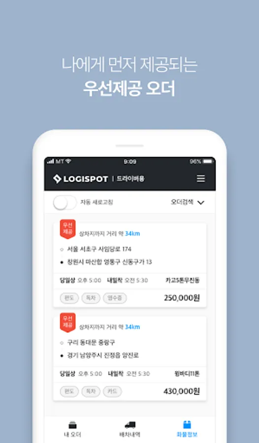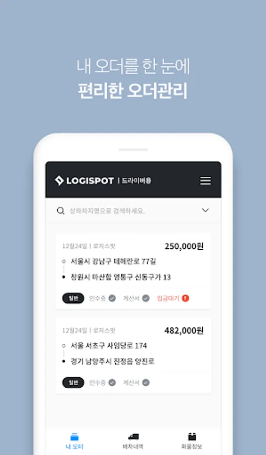 If you become a 'Plus Driver', a special benefit of LogiSpot, you will be given an order in the preferred section, and you can also make a deposit in just 3 days. (What is a Plus Driver? Selected for the Knight who consistently performed the Logispot Order)