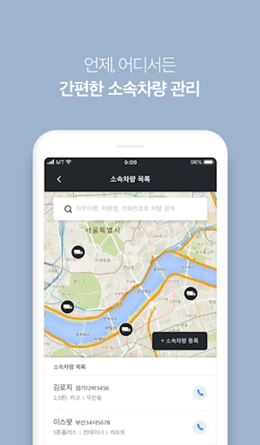 Vehicles registered by transporters and blacksmiths can be viewed at a glance on the map.