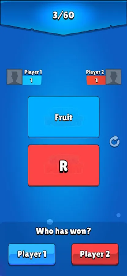 The game is played verbally, and as soon as one of the players names a word that is correct, then he scores 1 point. To score the point select the relevant button with the player number at the bottom of the screen.