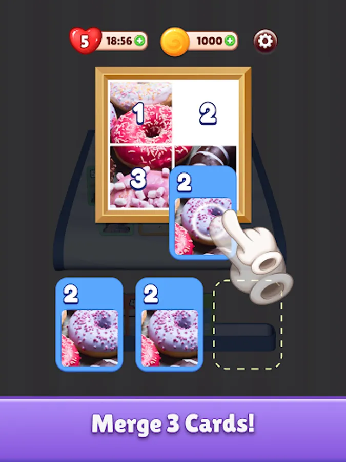 Merge Masterpiece is here to challenge your day! Tap and merge 3 identical numerical cards that will be showed on the bottom slot bar & complete all tasks. Solve the puzzles, win each level and unlock new stylish and exiting categories !