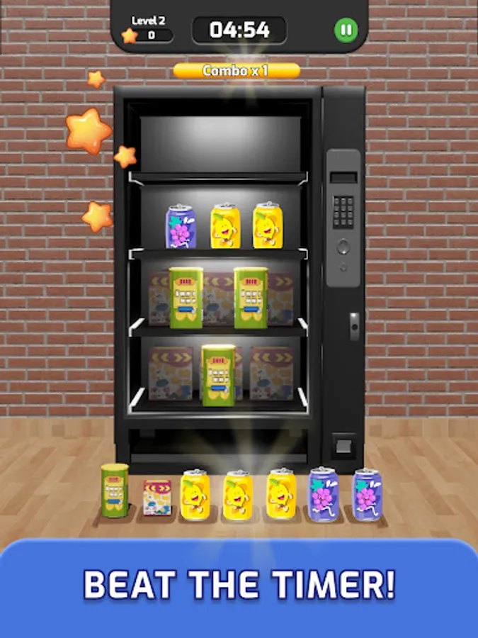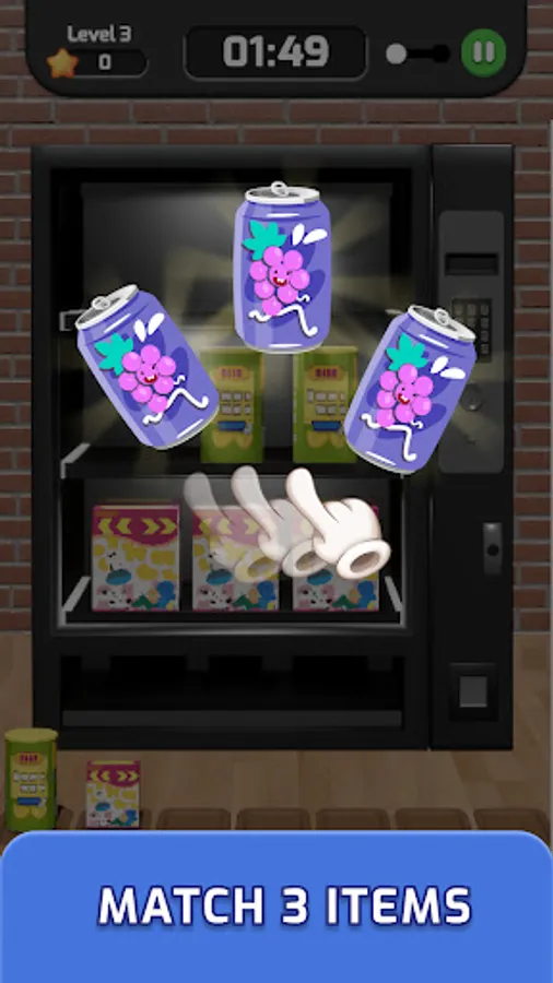 Snack & Match! Vending Machine Match 3D is here to spread the fun !! Tap on the machine to merge 3 identical items. Match them all to complete the level, beat the timer and unlock more fun and rewarding levels! How fast can you match?