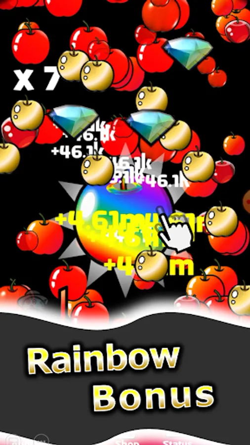 ・Get "FEVER TIME" and "RAINBOW BONUS" to get more apples!