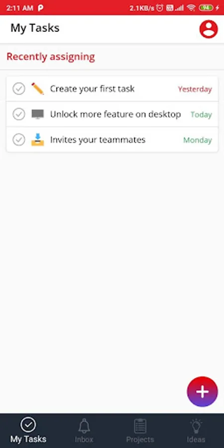 - Add a task for to-dos, reminders, ideas, and requests—before you forget