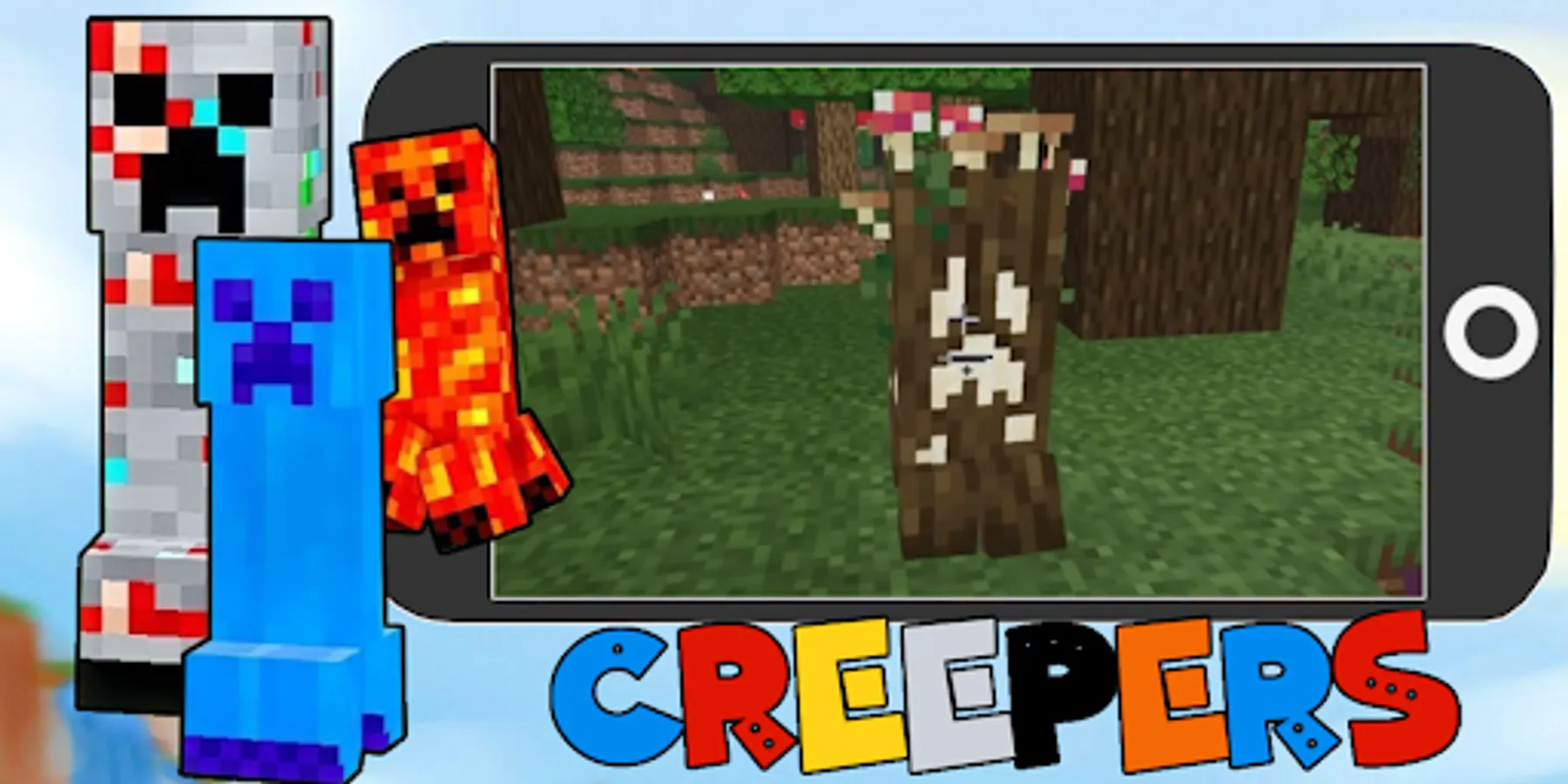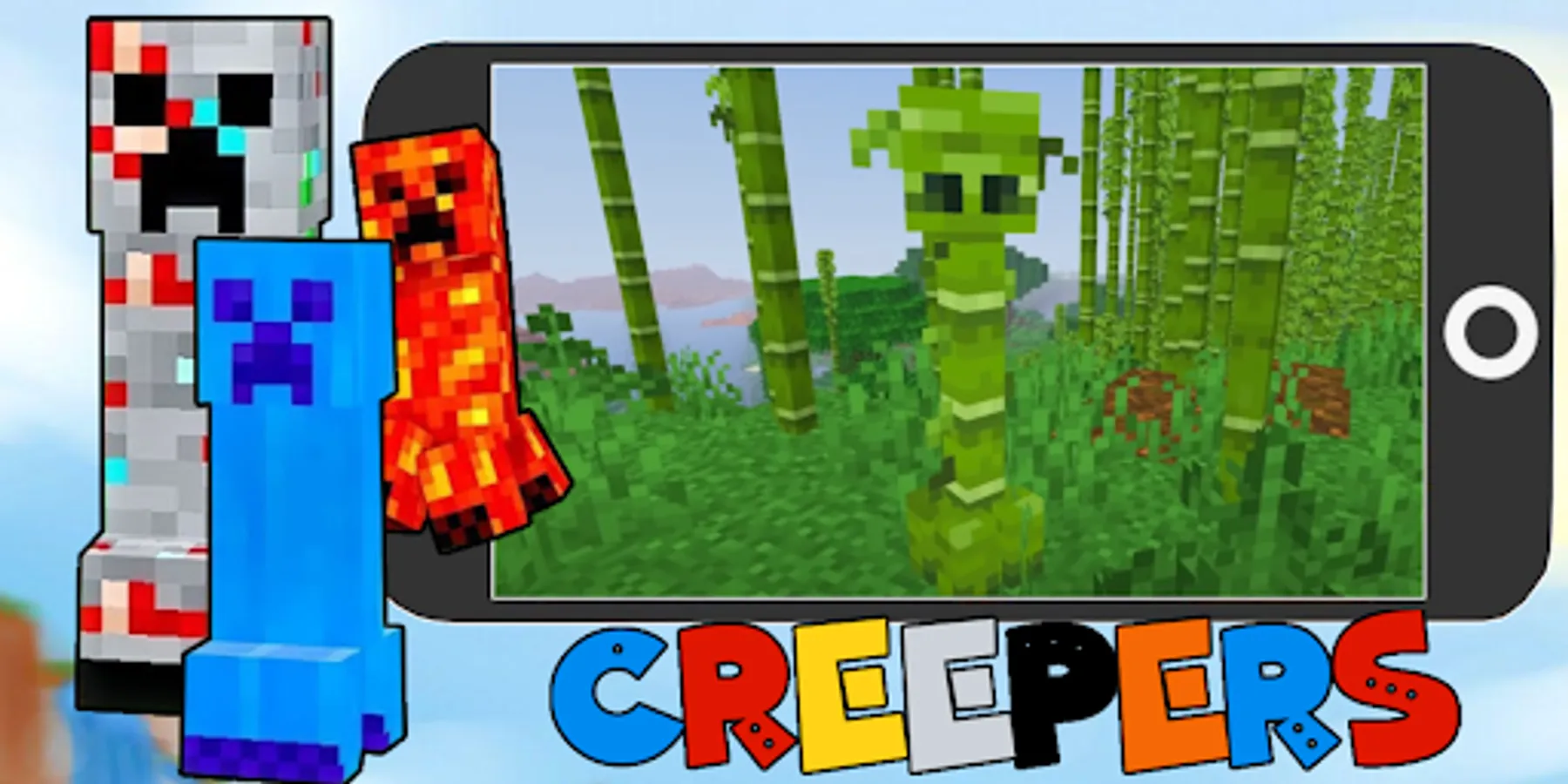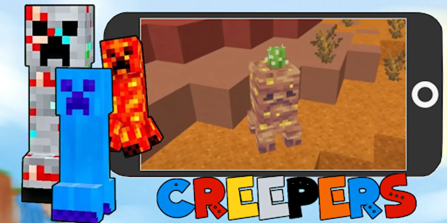 The variety of classic bedrock minecraft leaves much to be desired, which is why gamers are eager to experience new emotions. It is for this that the creeper addon is presented to your attention, it adds not only new looks but also the behavior of all creepers on the map. Unrecognizable creepers: the usual vanilla creeper cucumber sways a little and seems to be breathing. Sand biomes are filled with a mob consisting of gold ore and cactus. With scissors, you can cut a small cactus and wear it like a hat. Traveling through the bamboo grove, you most likely will not notice creatures similar to a bamboo branch, they will all begin to sneak up on you and after their eyes start to light up, you know now there will be a boom. Deciding to explore the aquatic biome, know that creepers will also be waiting for you on the beach, it will be a little easier to see them than others, because even though they have a sandy color of algae and shells that are on parts of the mob's body, they give out its disguise. If you put a creeper in a sand biome in survival mode, a sand biome will appear, and so on, depending on the biome in which you use the summon egg. The best way to test all the creatures is by playing with friends in the open world of your favorite game. Blinding is applied by a creeper from the dark forest - beware! Fans of the vanilla game will be pleased with the variety of skins and mobs, but most importantly, it does not change the gameplay.