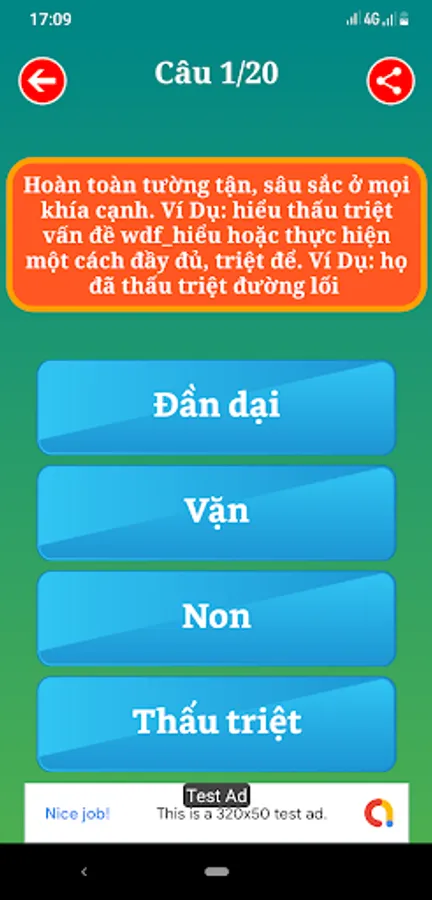 © Sharing through methods of answering multiple-choice questions about the meaning of Vietnamese words, practicing Vietnamese pronunciation