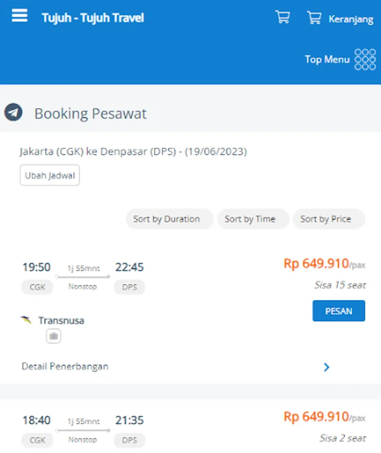 Seven Seven Travel is designed with a simple and simple appearance making it easier for users to order tickets. Until now we are still developing and trying to find the best solution for those of you who want to travel / travel throughout Indonesia.