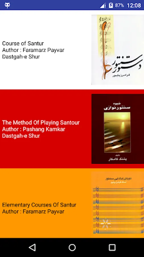 Course of Santur Book, The Method Of Playing Santour, Elementary Courses Of Santur, 20 Pieces for Santur, Golnar, Yadegaran, Hezar Dastan.