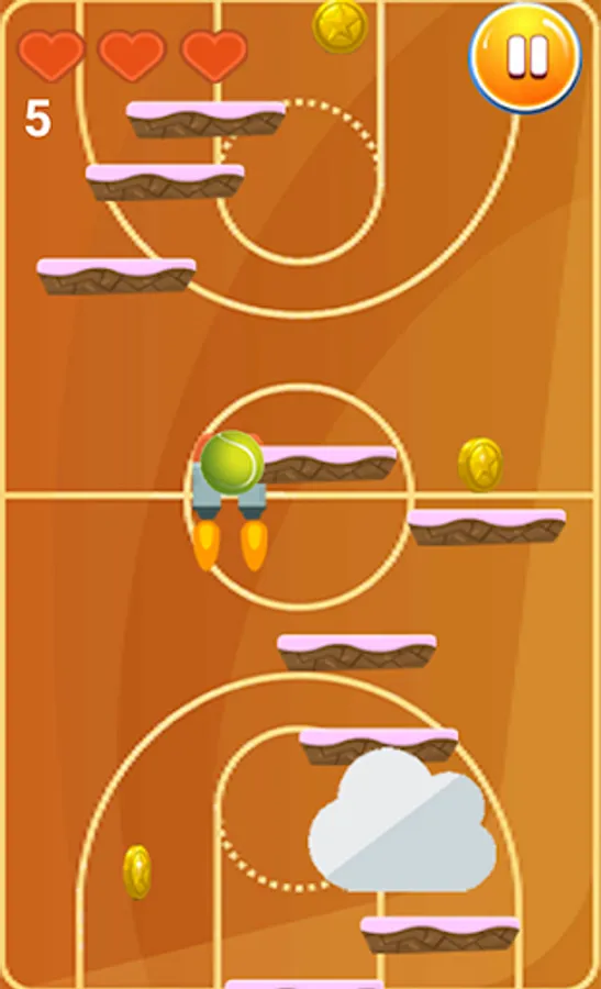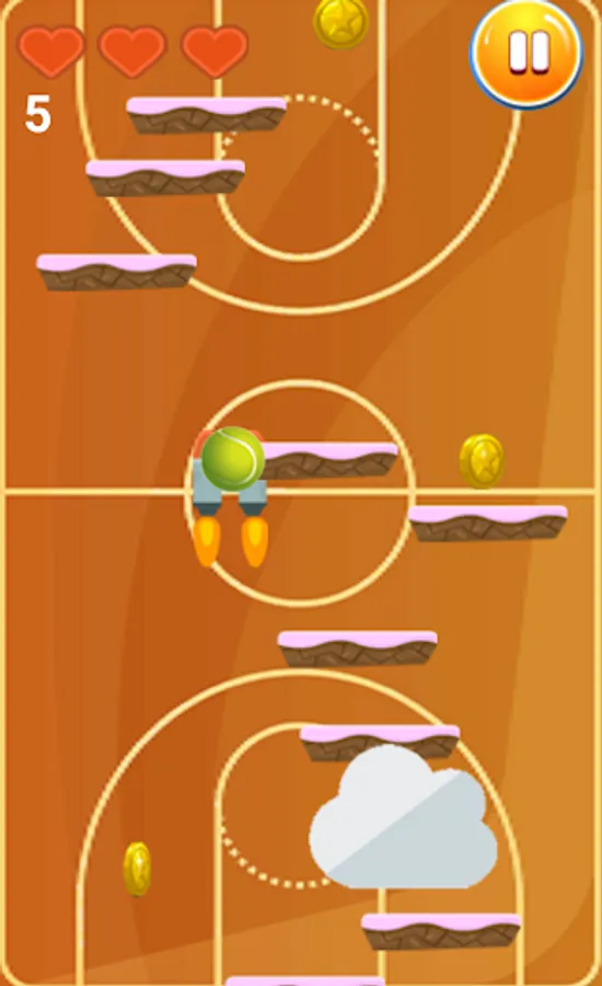 In the game, the ball goes up one by one, and each time new steps are created, and by going on top of that step, it rises higher. Thus, he must avoid obstacles and collect gold coins.